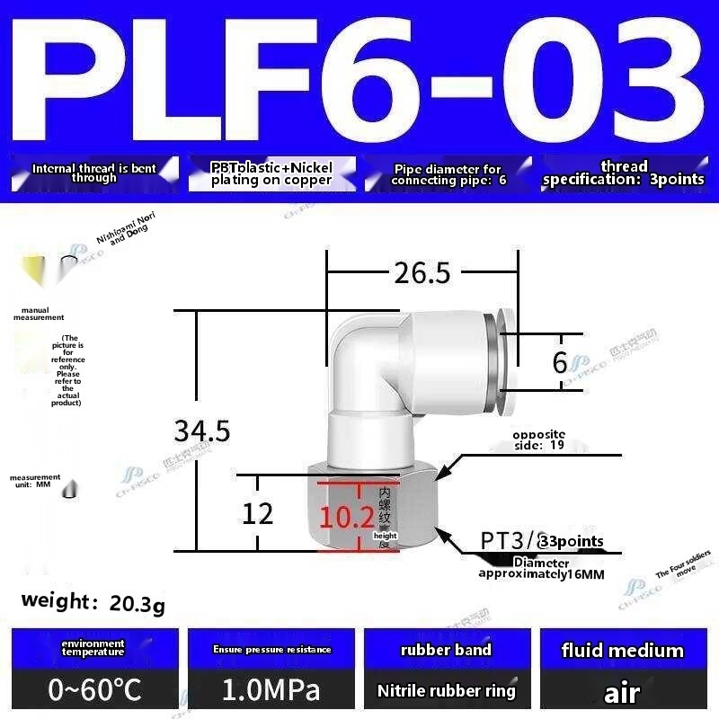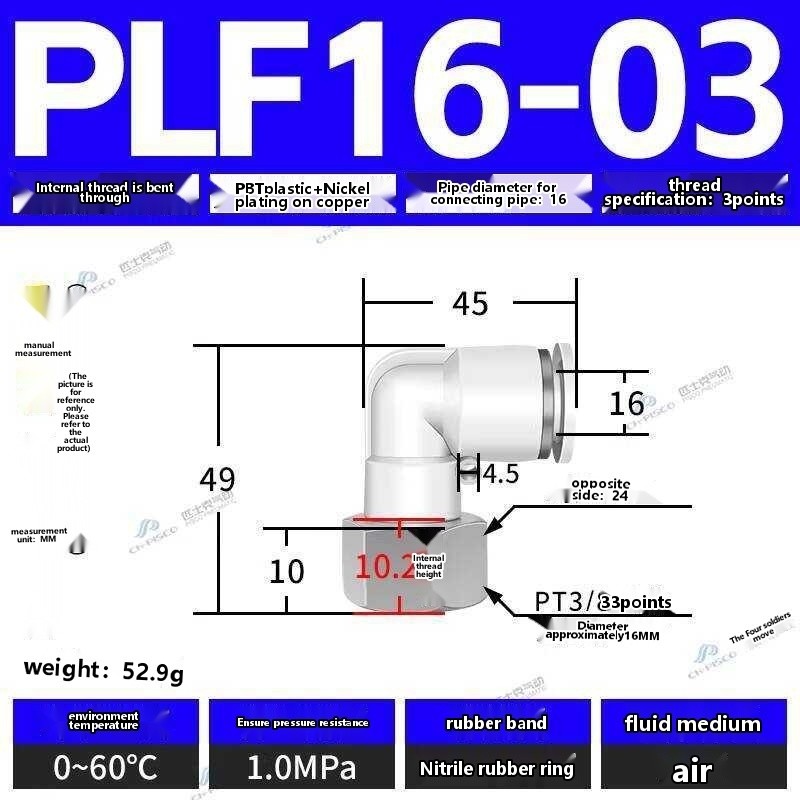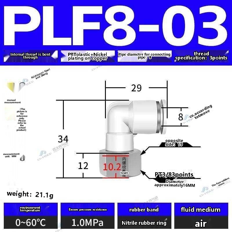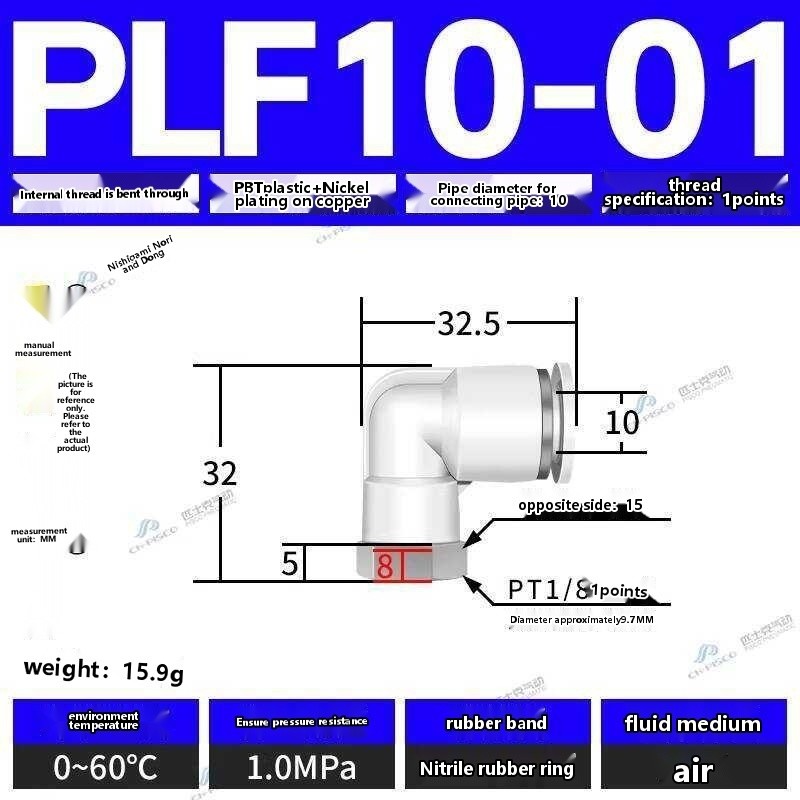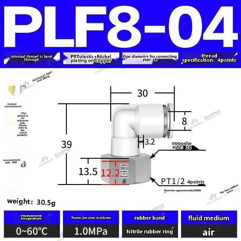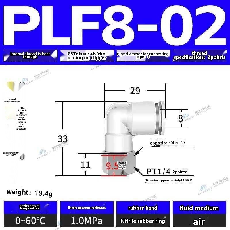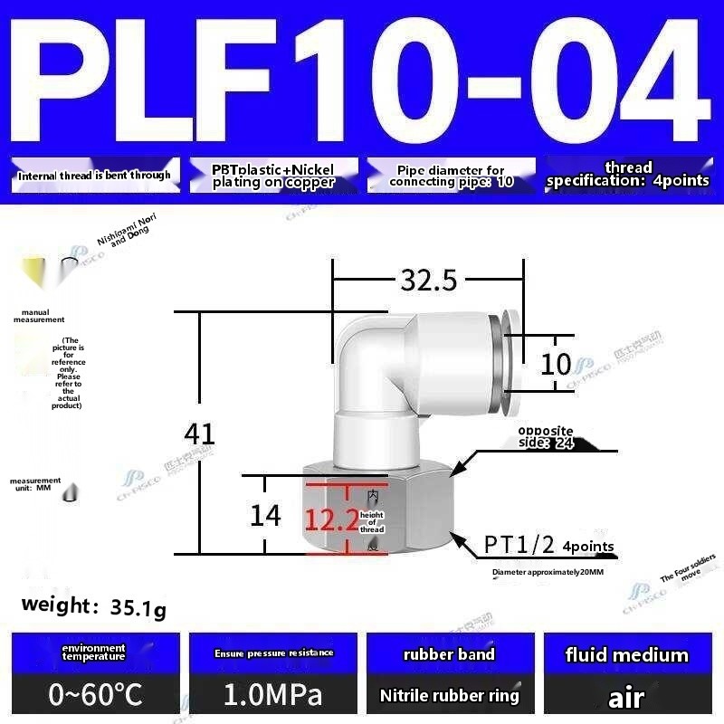 ☑☑ CHPISCO pneumatic PLF8-02/10-04 internal thread quick air hose connector