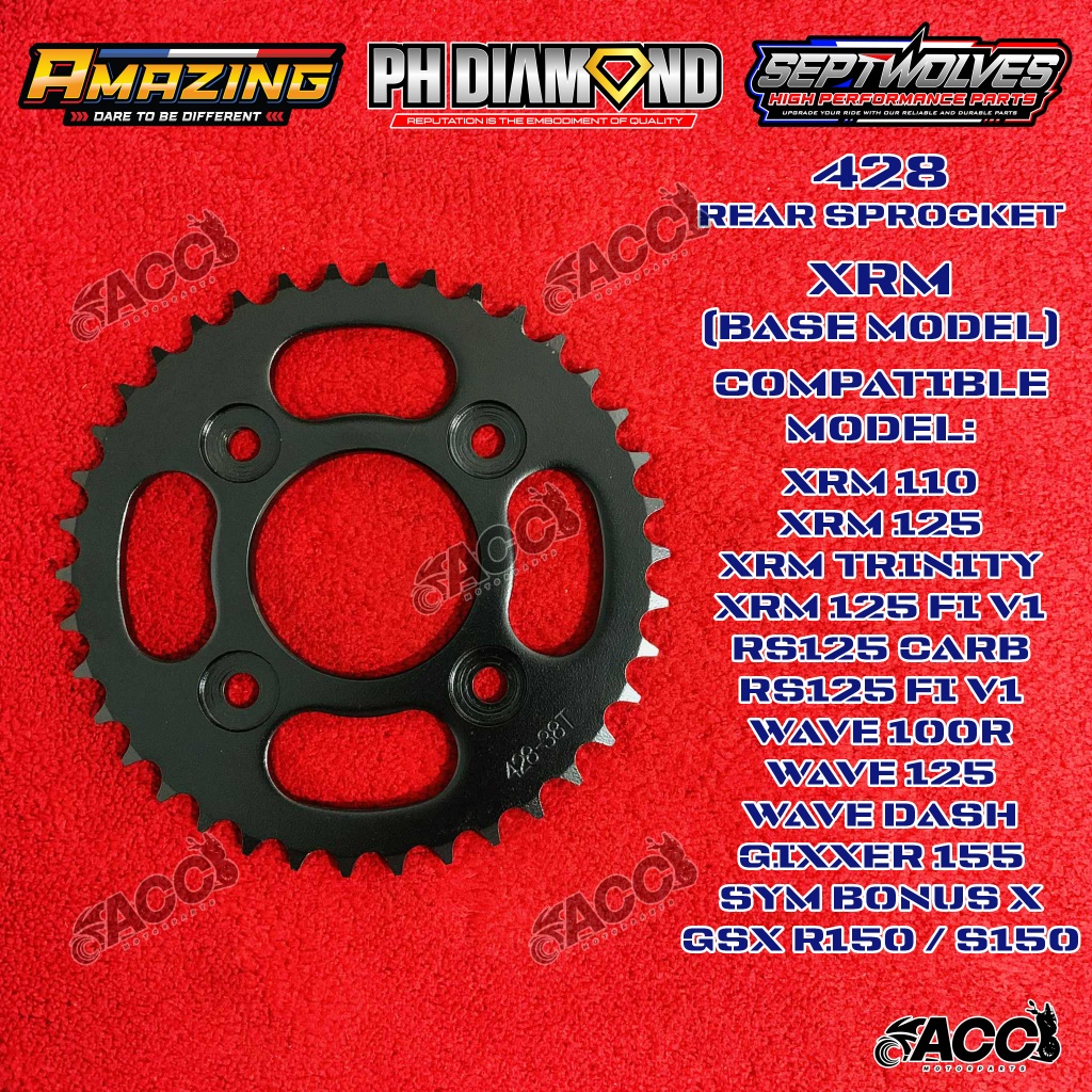 ✅ 428 Rear Sprocket XRM110, XRM125, WAVE125, RS125, Gixxer, GSX-R150, GSX-S150 - 34T 36T 38T 40T 42T