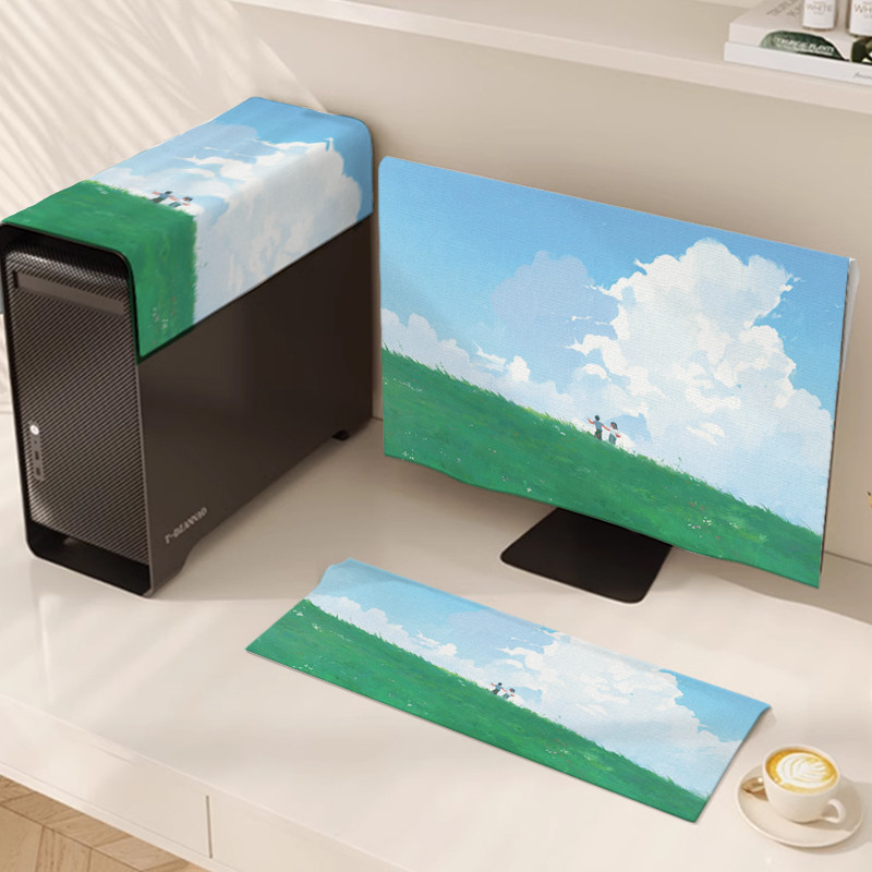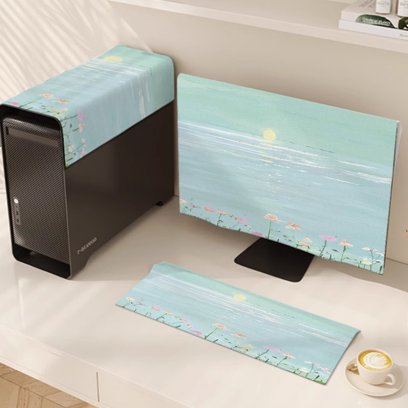 ✅Desktop Computer Monitor Dust Cover Cloth New Computer Three-Piece Set Screen Keyboard Mainframe Dust Protection Cover