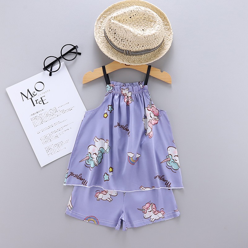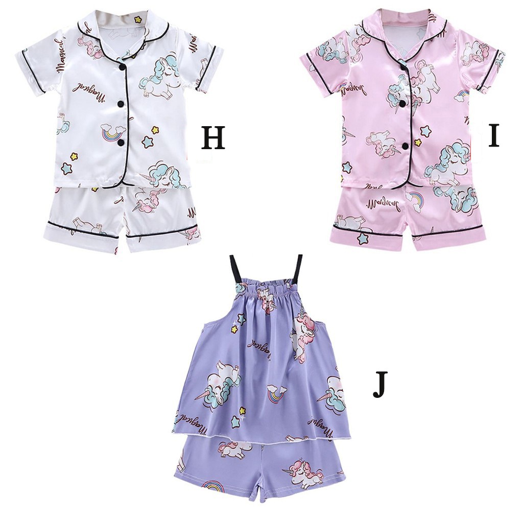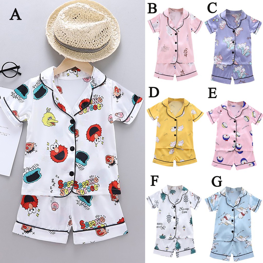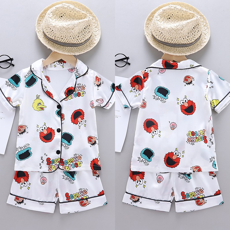Baby Sleepwear Cartoon Print Kids Pajama Set Girls Boys Short Sleeve Sleep Blouse+Shorts 2Pcs Sets Silk Pajamas Nightclothes For 1-6 Years Old
