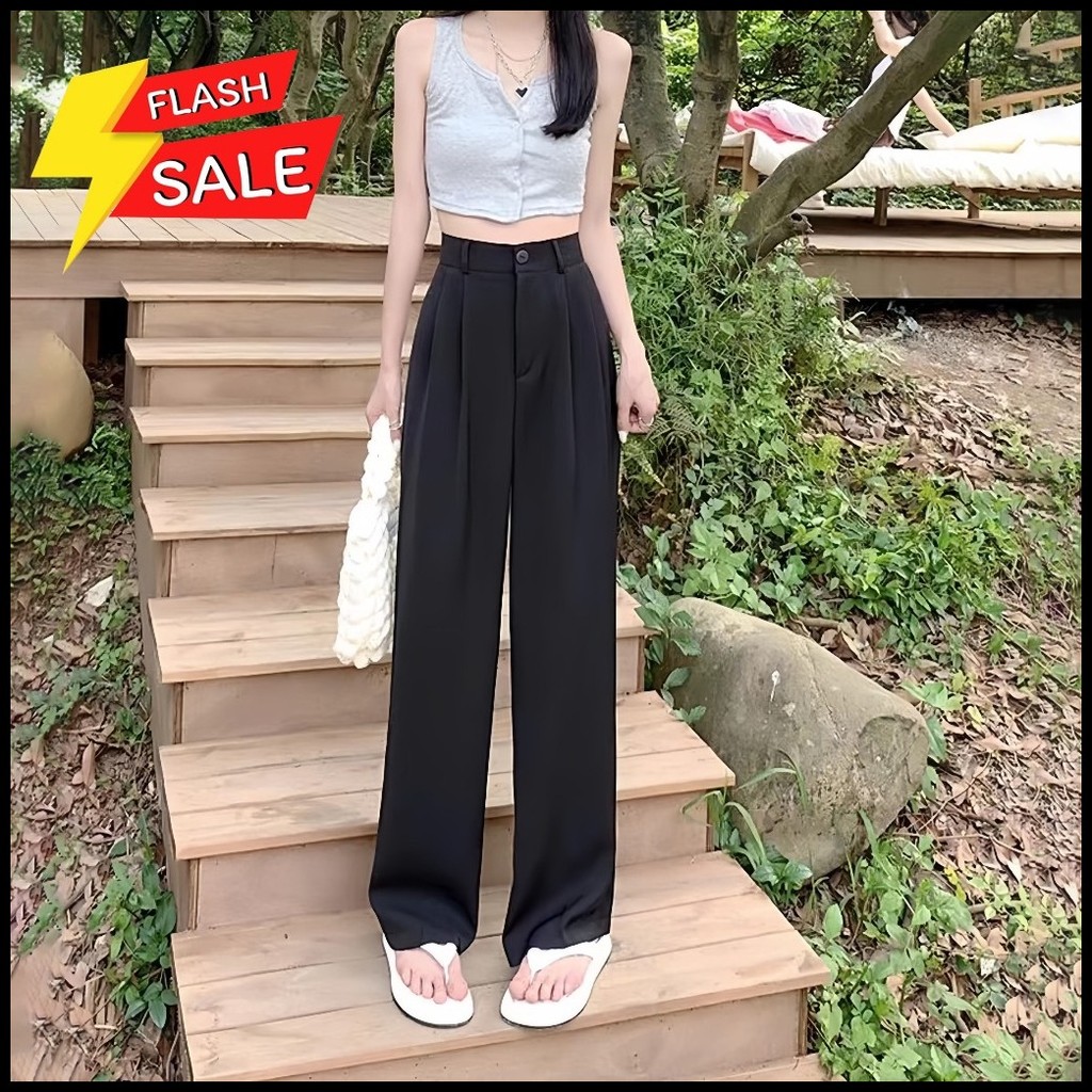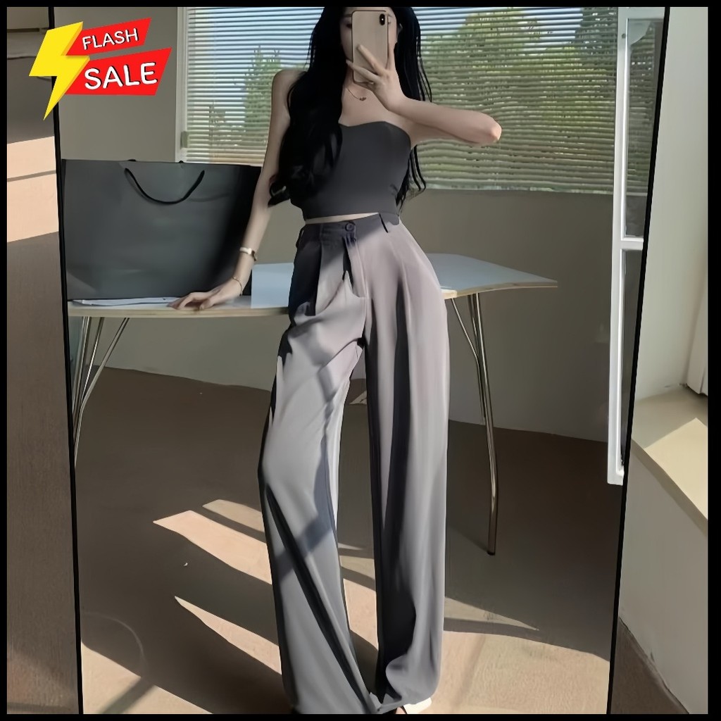 ✨ Kinwoo one size and M-2XL size suit pants high waist slimming elastic women's trousers wide leg p