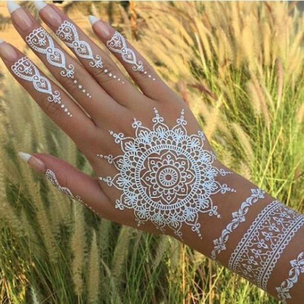Buy 2 get 5% off Waterproof Henna White Lace Mandala Flower Temporary Body Hand Tattoo Sticker