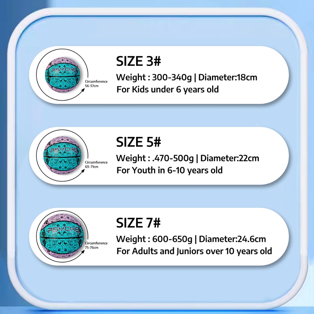 「Psyche」 Basketball Ball Junior Size Kids Youth Size 3 Size 5 Size 7 Mini Original Small Outdoor