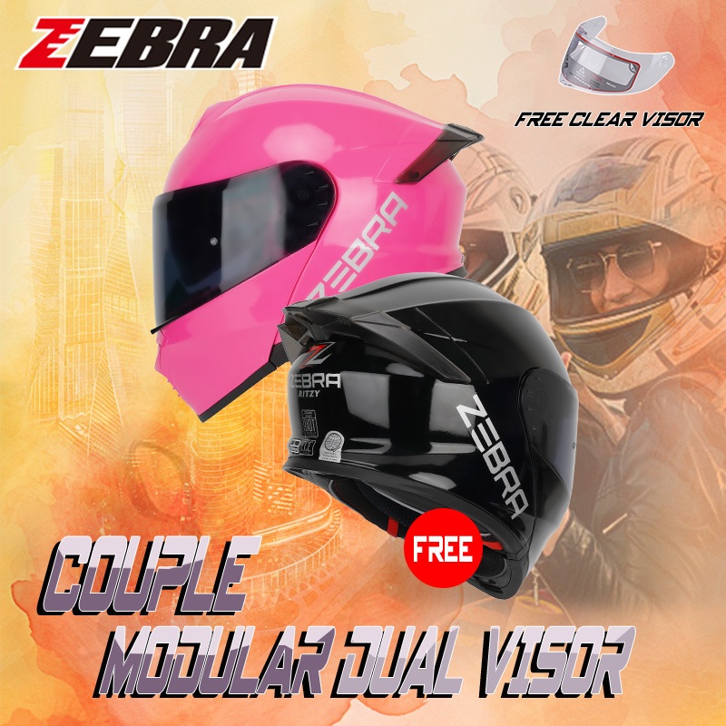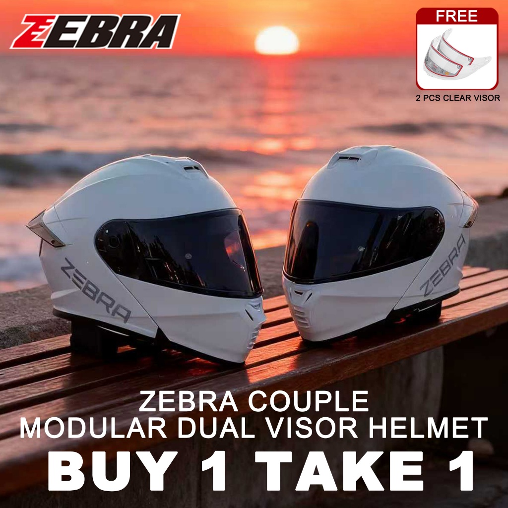 【𝑩𝒖𝒚 𝟏 𝑻𝒂𝒌𝒆 𝟏】 ZEBRA Couple Modular Buy 1 Take 1 Riding Partner Exclusive Men Women Helmet Full Face