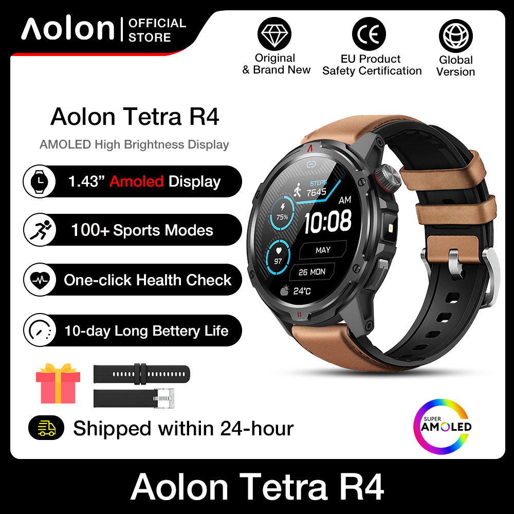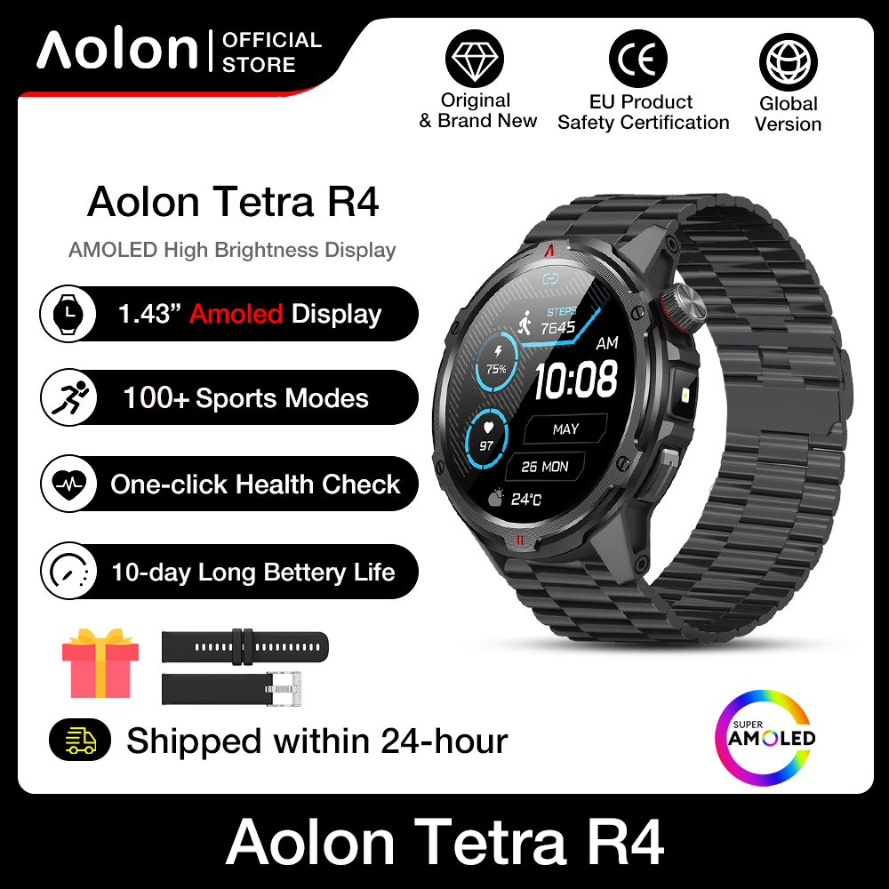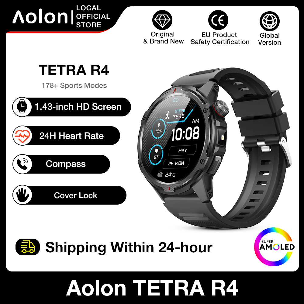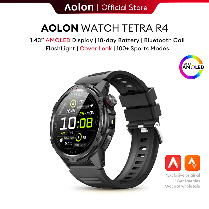 【1 Year Warranty】Aolon TETRA R4 Smart Watch Amoled Cover Lock Comapss Waterproof Smartwatch