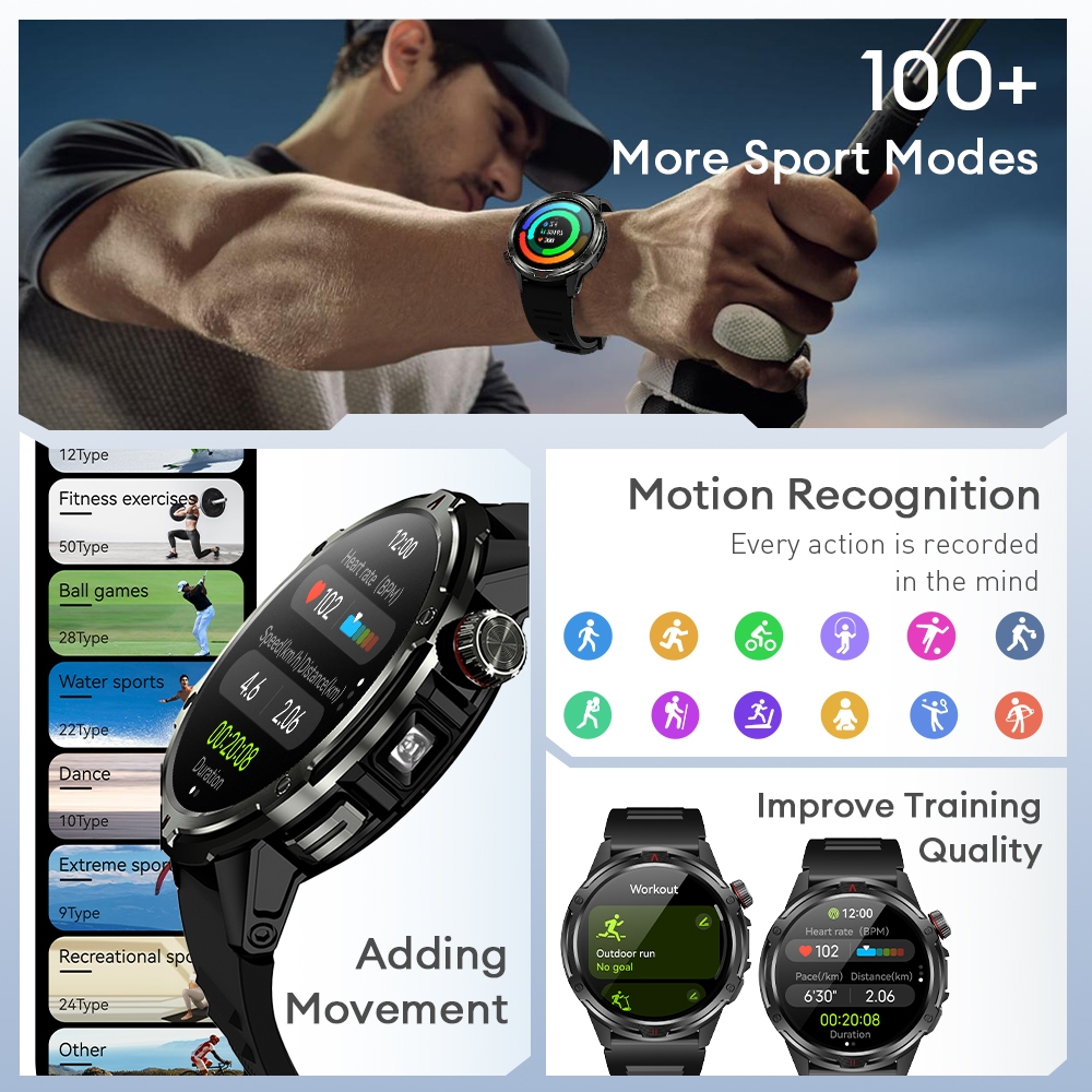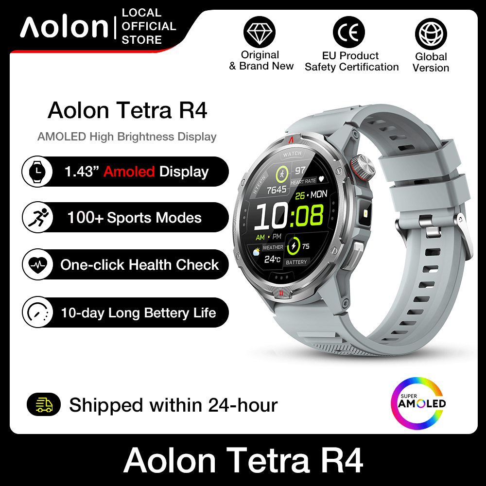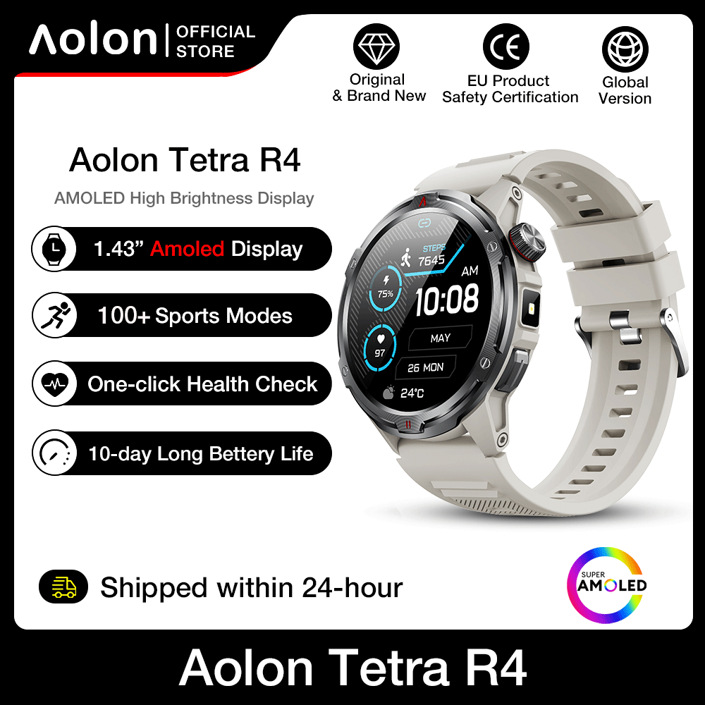 【1 Year Warranty】Aolon TETRA R4 Smart Watch Amoled Cover Lock Comapss Waterproof Smartwatch