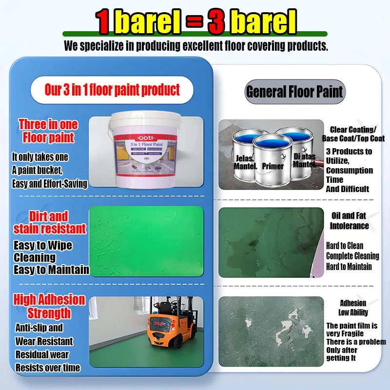 【1KG】3 in 1 Epoxy Flooring Paint Epoxy Resin Floor for Warehouse Parking Factory Garage Lot Patio