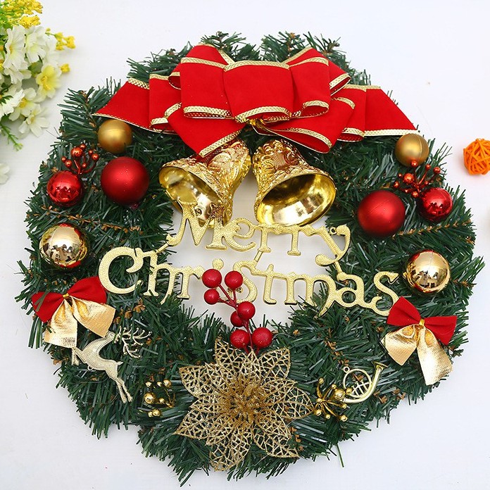 2024 New Christmas Wreath High Quality Artificial Garland Ribbon Pinecones Handmade Gift Xmas Decor