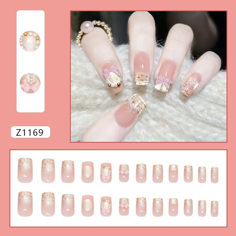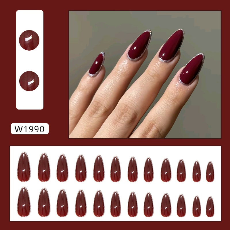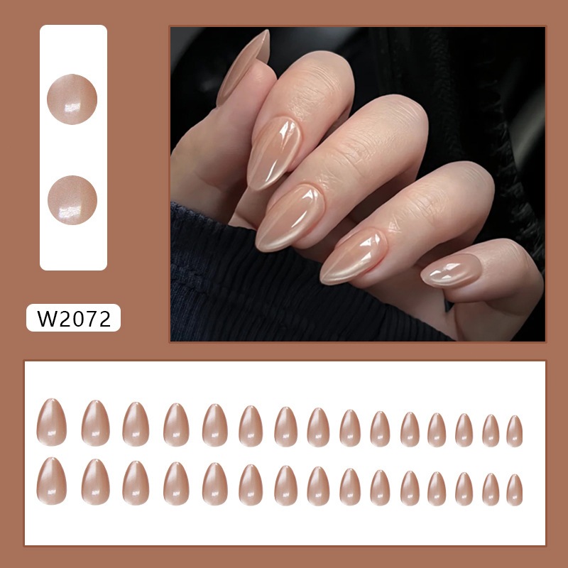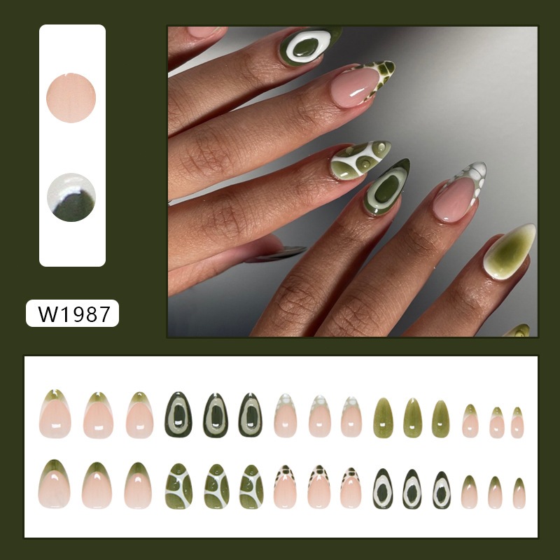 【2024 NEW】24Pcs Almond Fake Nails Set With Glue and Design Long Nails DIY French Finger Nail Art COD
