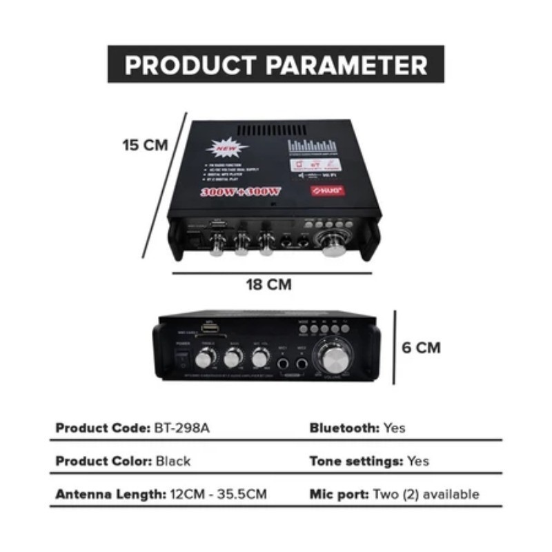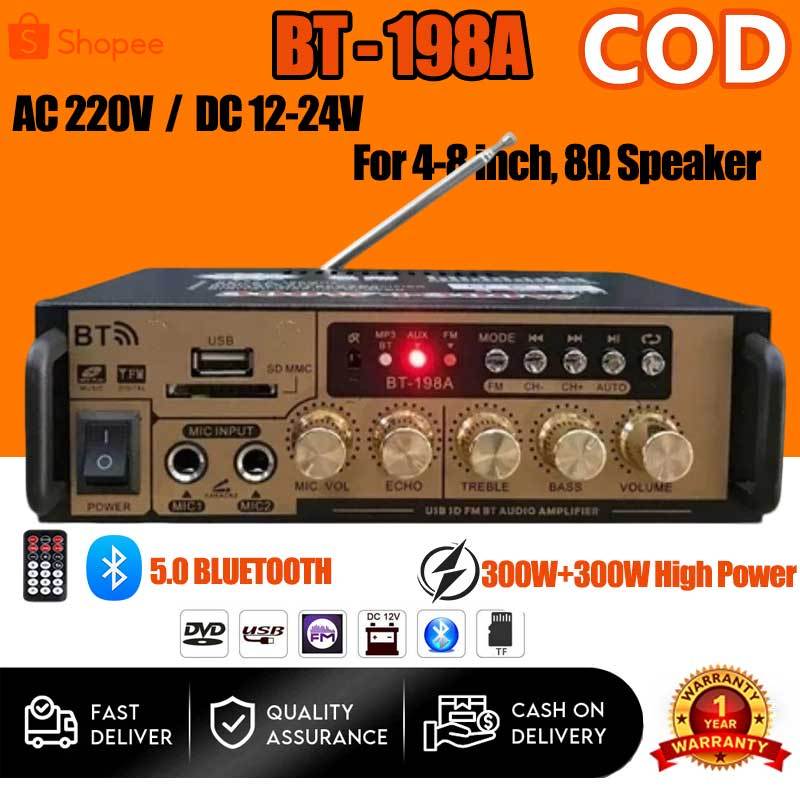 【COD】Bt-298A Hug 300W+300W Digital Hifi Bluetooth Stereo Audio Amplifier 12V 220V With Remote