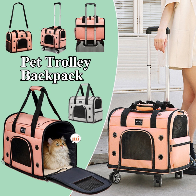 【COD】Pet Trolley Bag with Wheel Multifunctional Dog Bag Outdoor Carrier Case Pet Travel Backpack