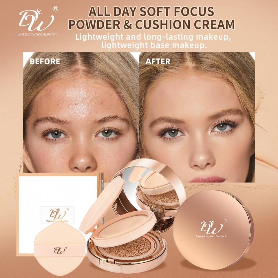 【FDA Approved】 DW 2in1 Powder & Cushion Cream All in one Oil control Long lasting Waterproof Makeup