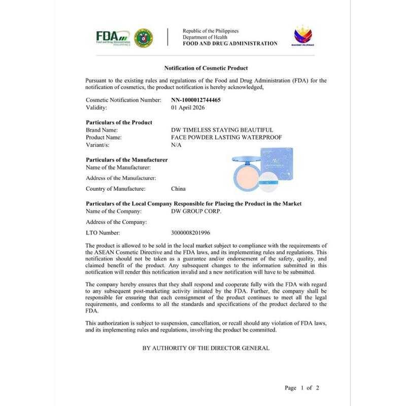 【Fda Approved】Dw Face Powder Foundation Lasting Waterproof Oil Control Long-Lasting Fresh