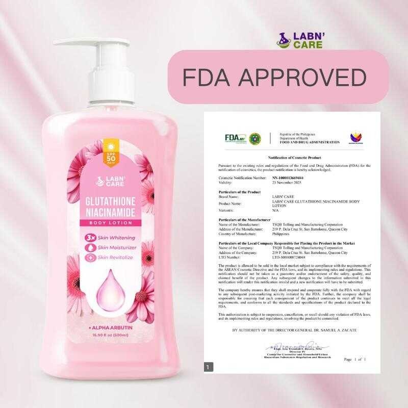 【Fda Approved】Labn' Care Glutathione Niacinamide Body Whitening Lotion 500Ml With SPF 50 P