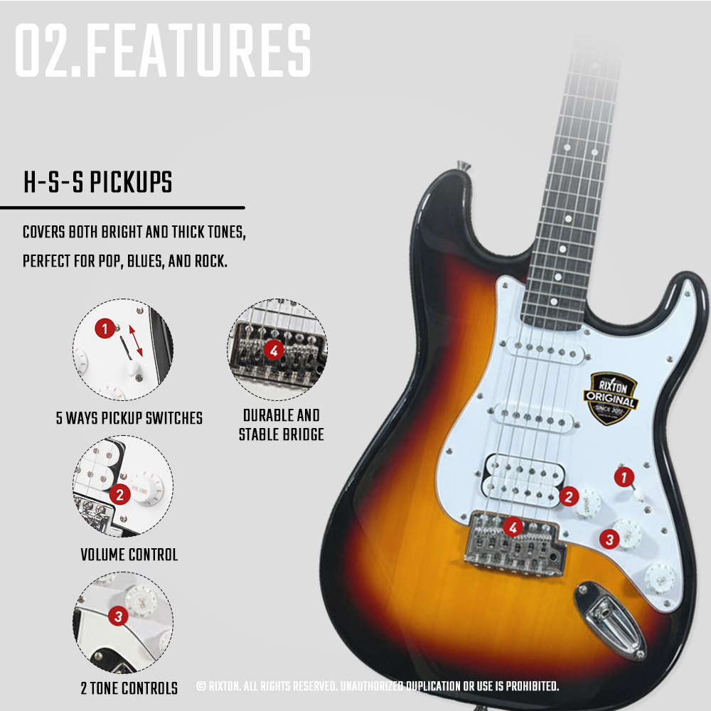 【Free Gifts】RIXTON Electric Guitar Electric Acoustic Guitar With Amplifier Bass Guitar for Beginners