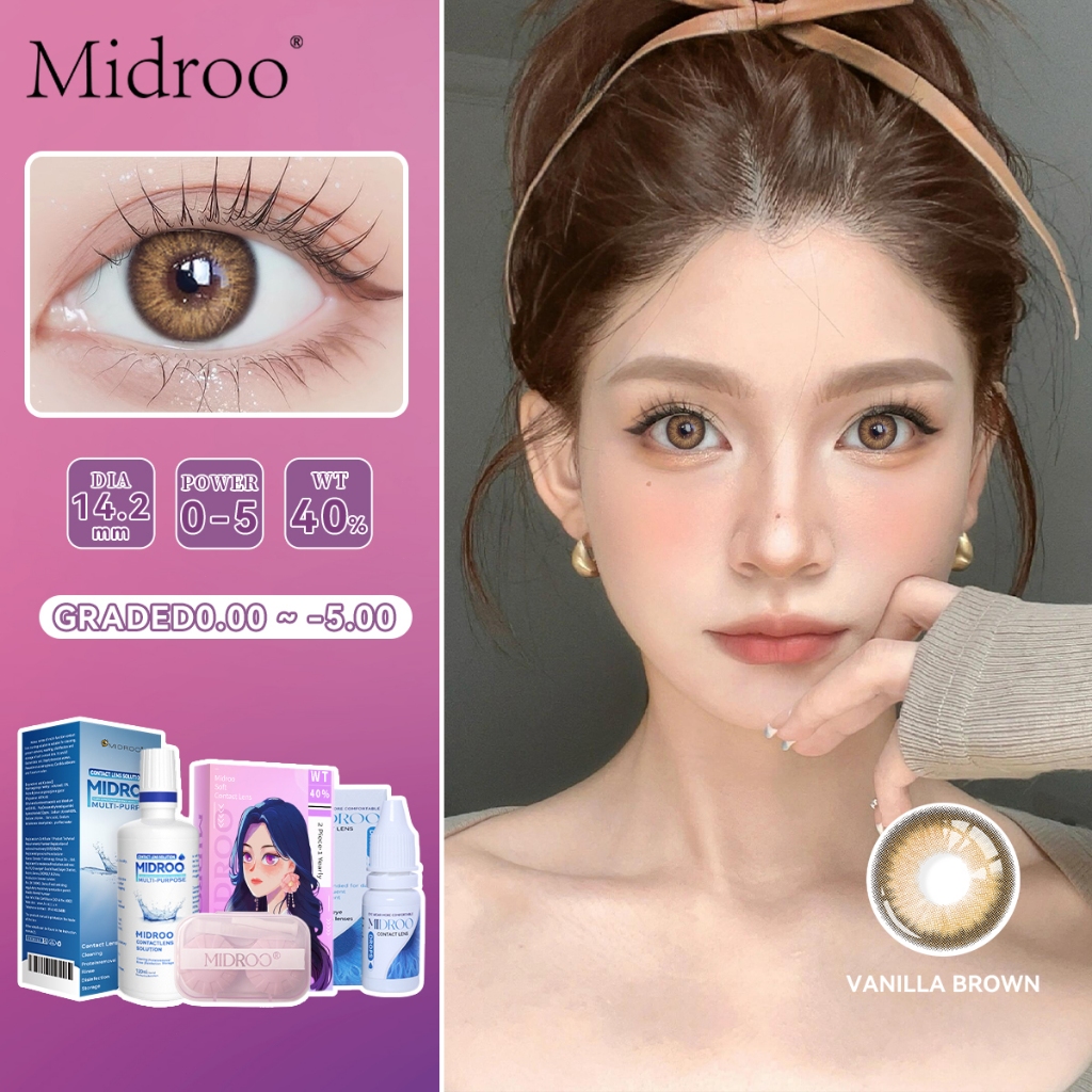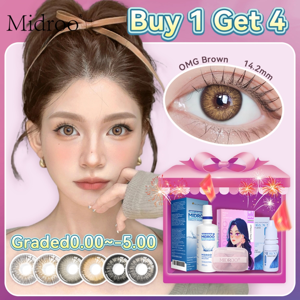 【Graded 0.00~-5.00】Midroo 2PCS\PAIR OMG Degree Contact Lens Full Set FDA Approved for One Year Use