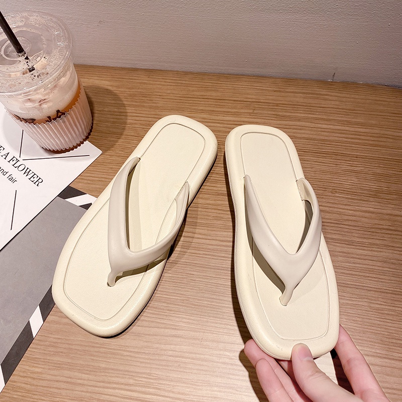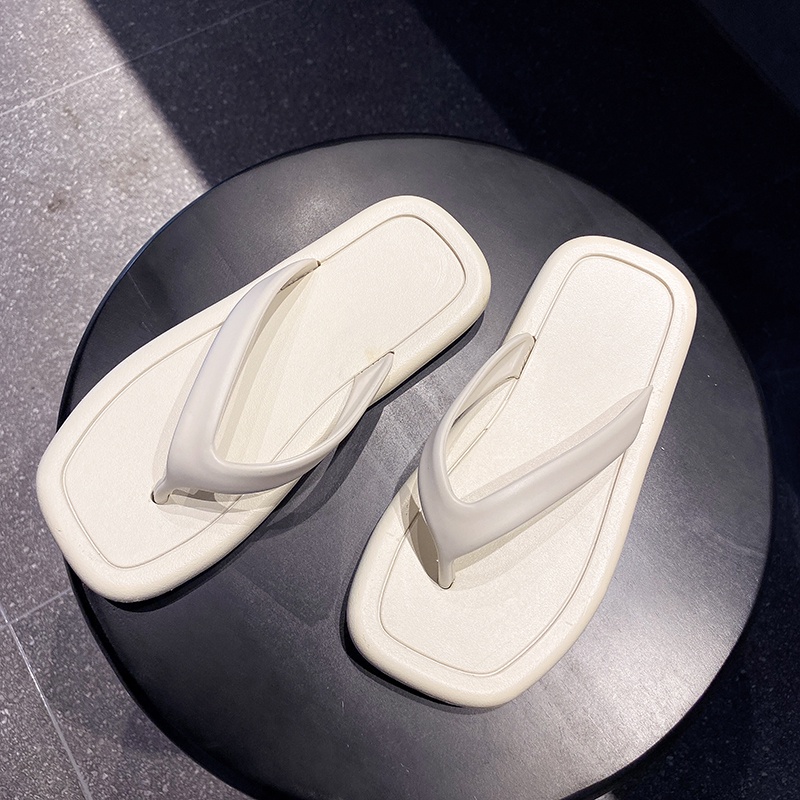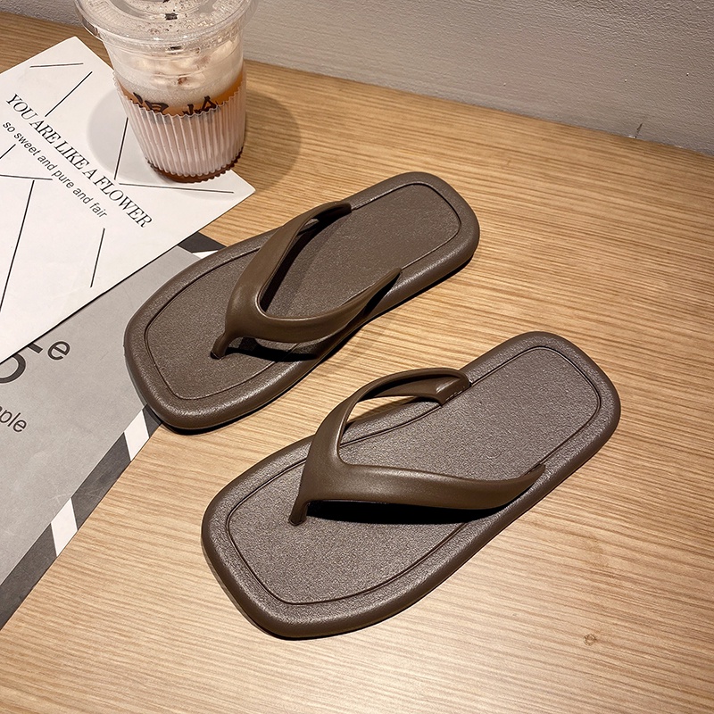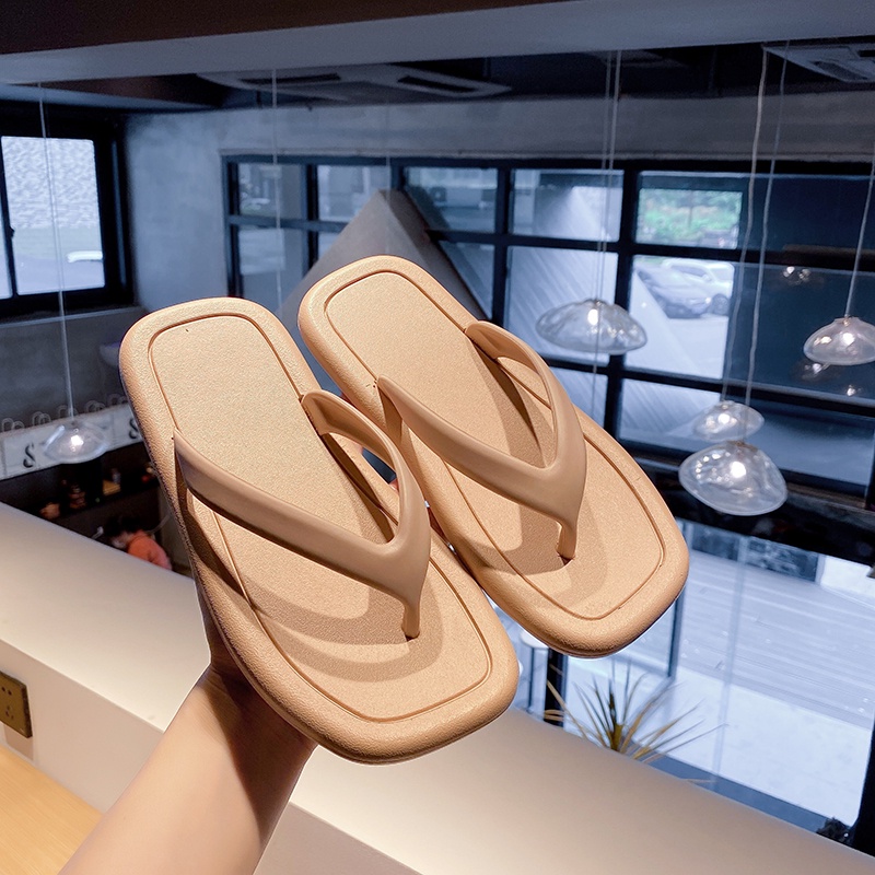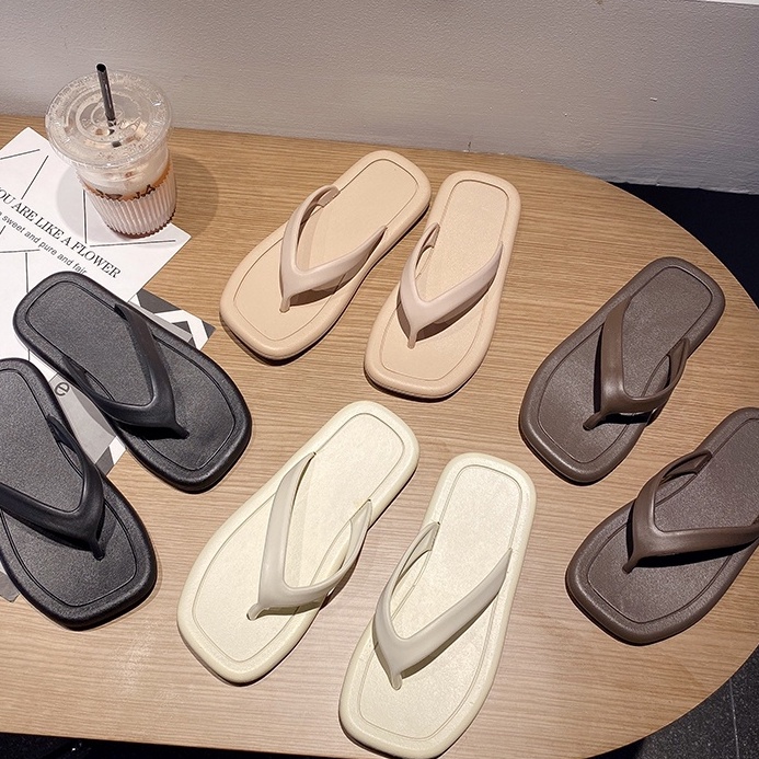 【LaLa】New Comfortable Flat Bottomed rubber Square Flip-Flop Slippers For Women footwears