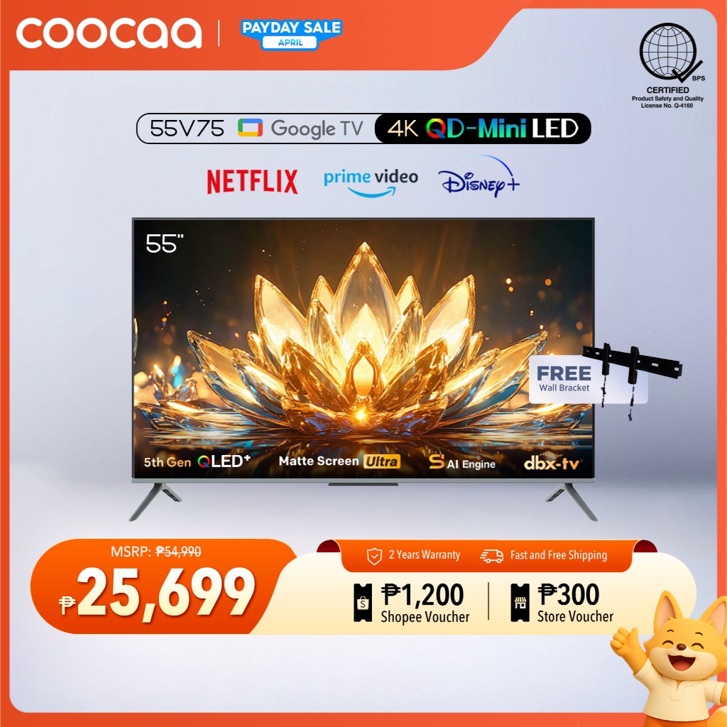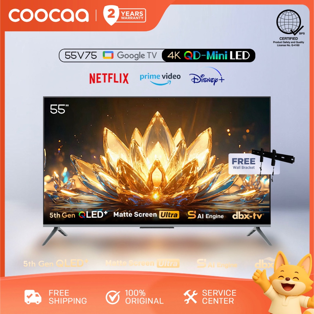 【NEW】COOCAA 55 Inch 4K Mini QLED TV- 55V75 (5TH Gen QLED+, S'AI Engine, Dolby Vision)