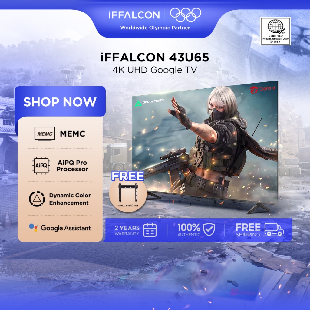 【NEW】iFFALCON 4K HDR Google TV U65 (Dolby Audio, Voice Control, Google Apps) 43 50 55 65 Inch