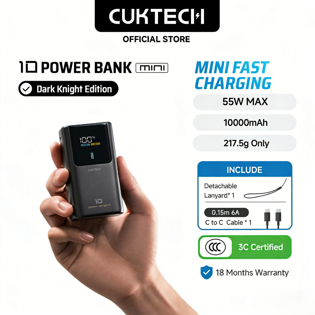 【CCC Certified】 CUKTECH Mini 55W Fast Charging Power Bank 10000mAh Super Compact Portable Charger PD3.0 2C1A for Xiaomi Samsung iP (10 Mini Powerbank)