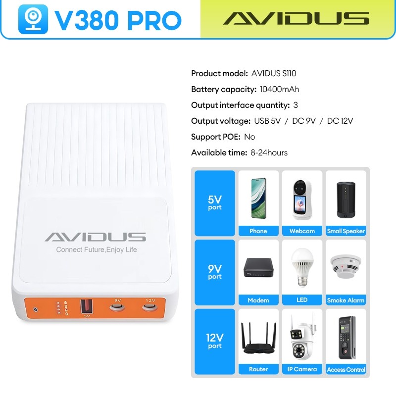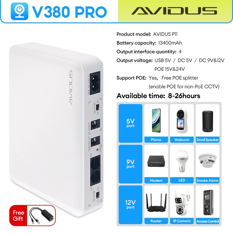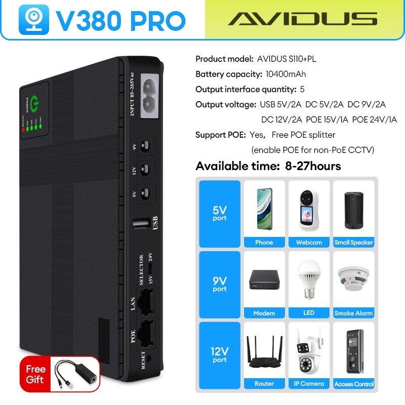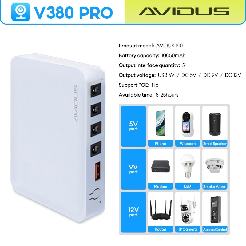 【One Stop】V380 PRO Mini UPS Power Supply for CCTV Camera & WIFI Routers & Modem 5V/9V/12V Outputs