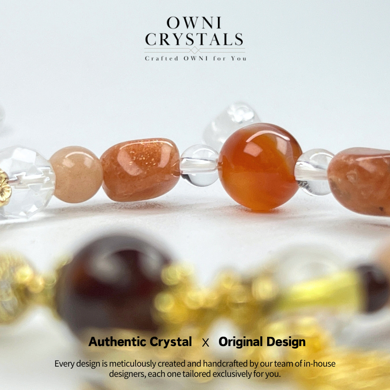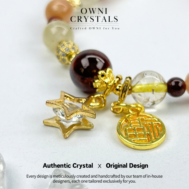 【OwniCrystals】Wealth Health Sunstone Gold Rutilated Quartz Garnet Clear Quartz Agate Natural charm crystal bracelet bangle for woman