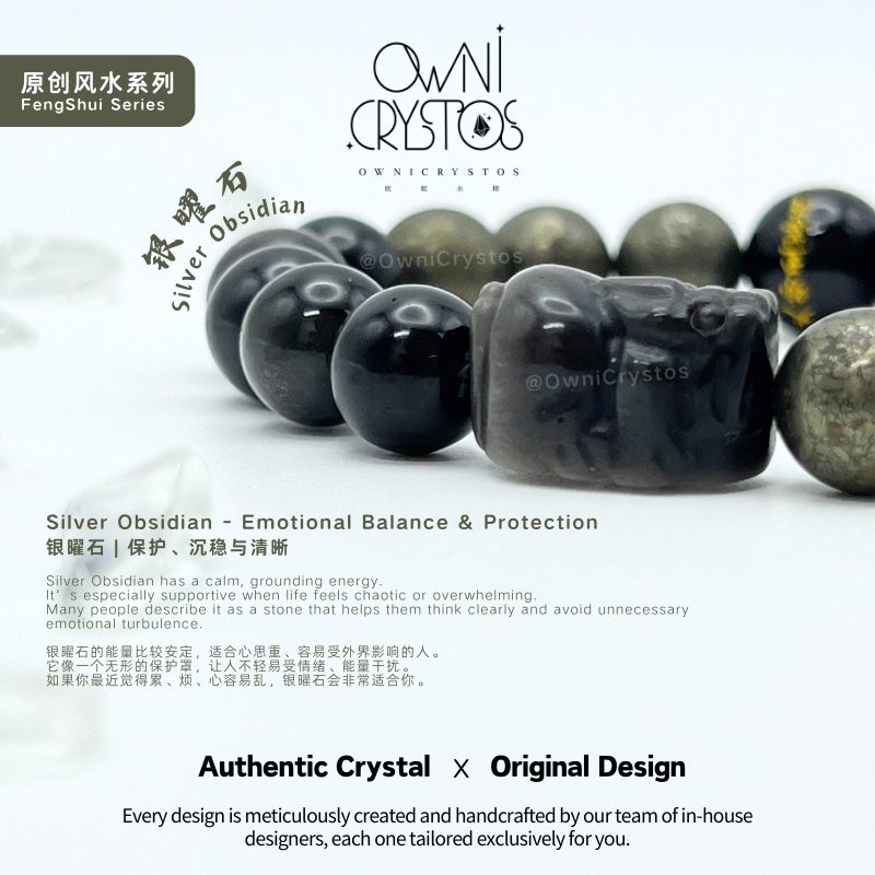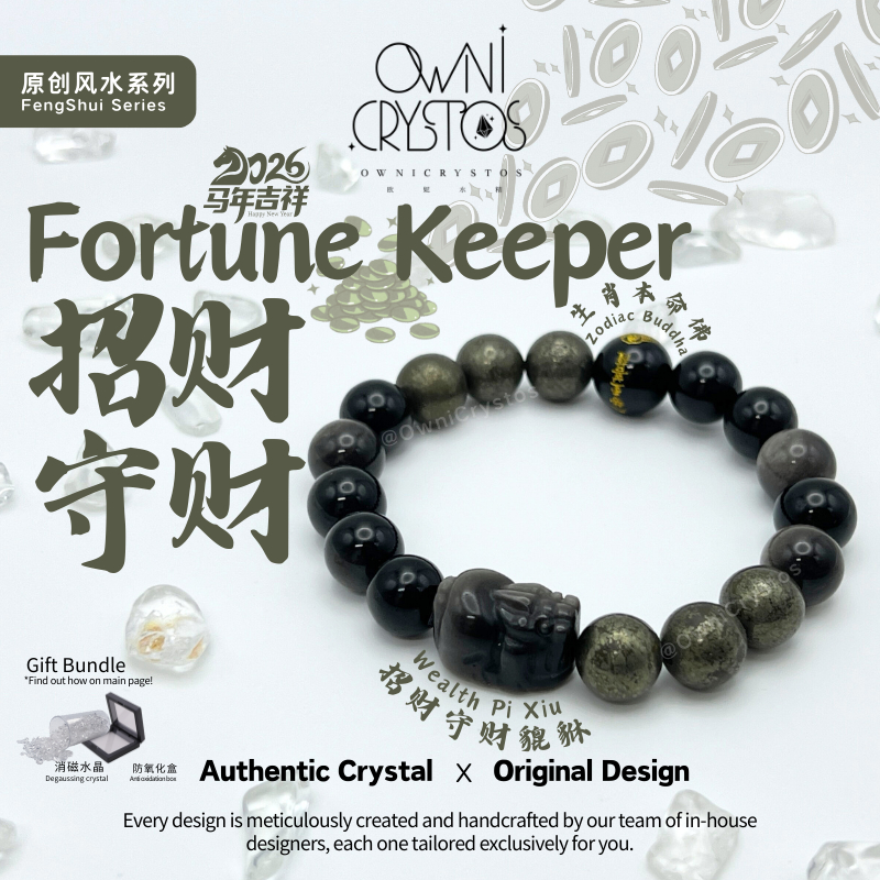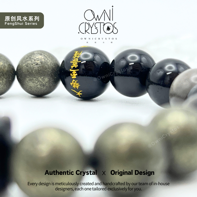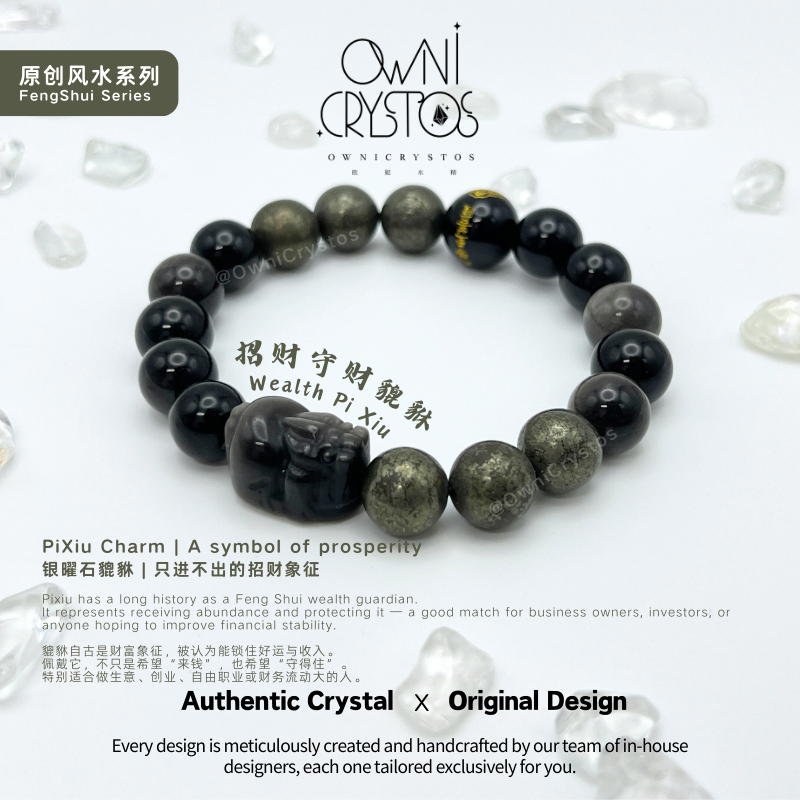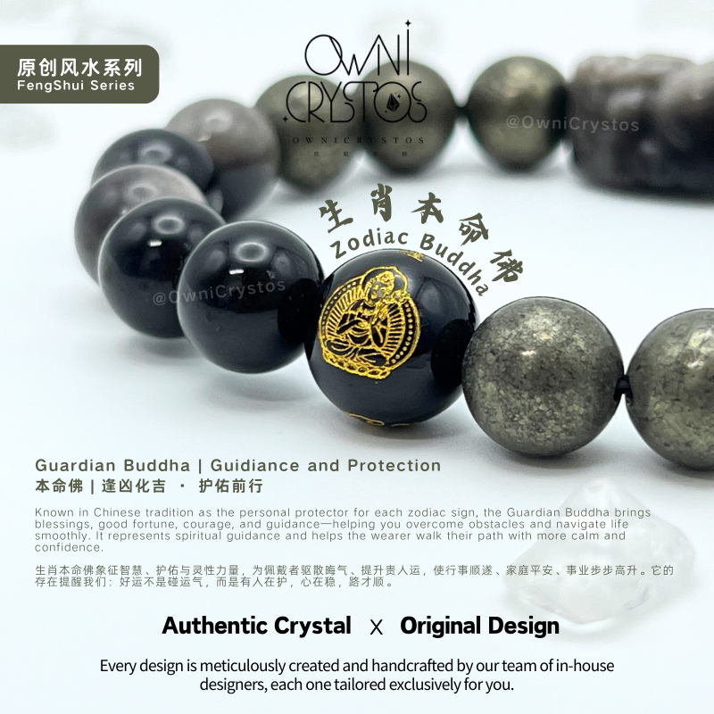 【OwniCrystos】2026 Pixiu/Piyao with Zodiac Guardian Natural Obsidian Pyrite crystal bracelet gift for husband