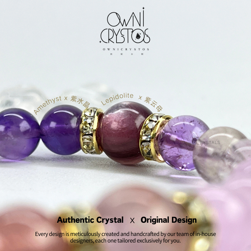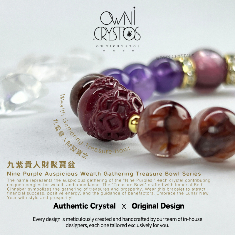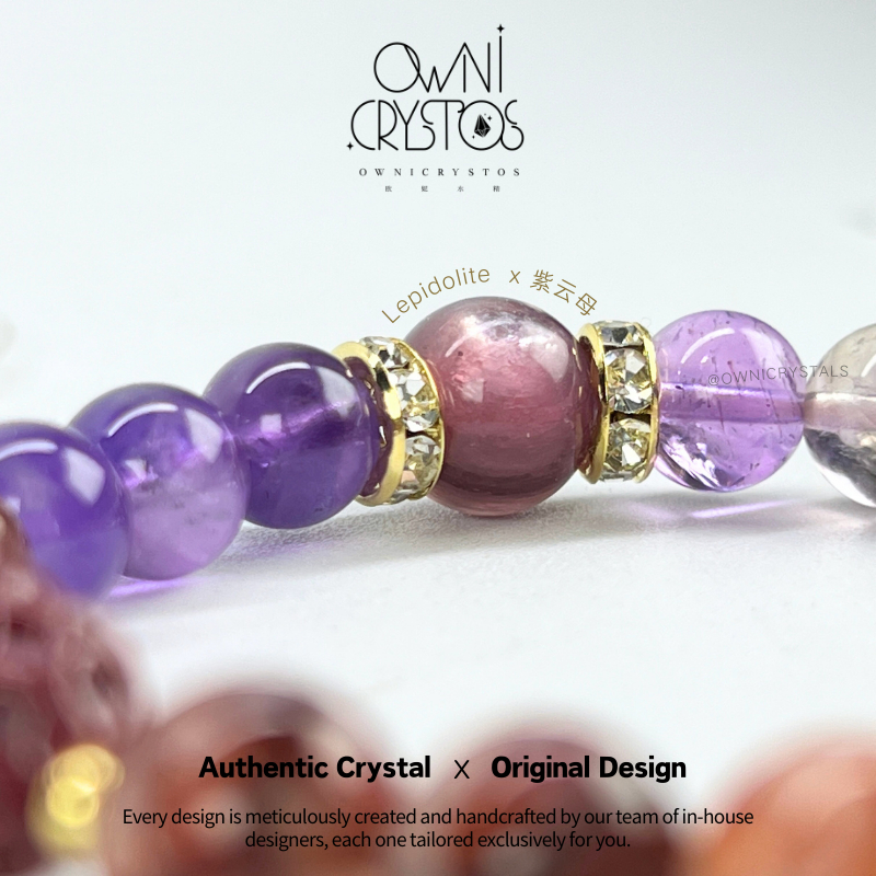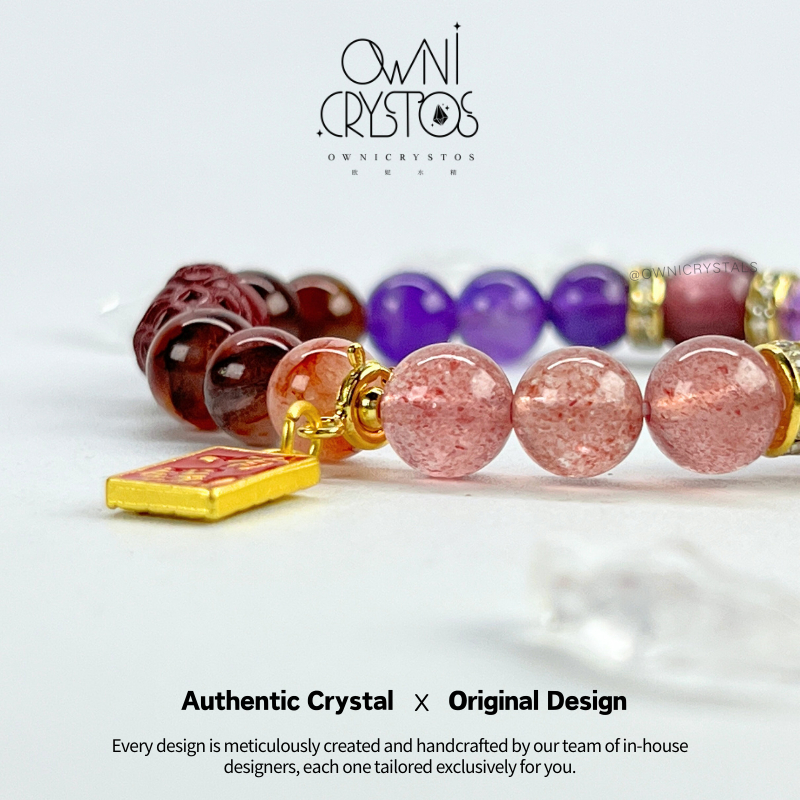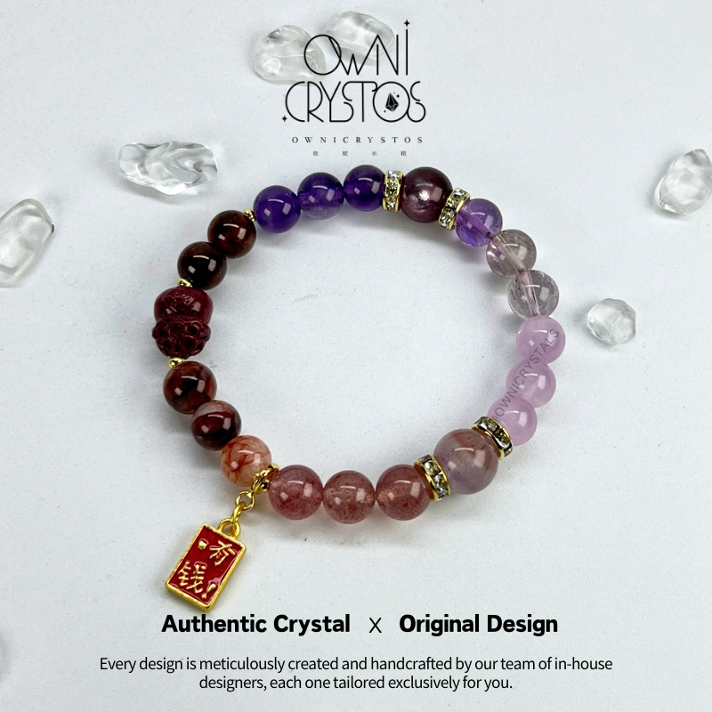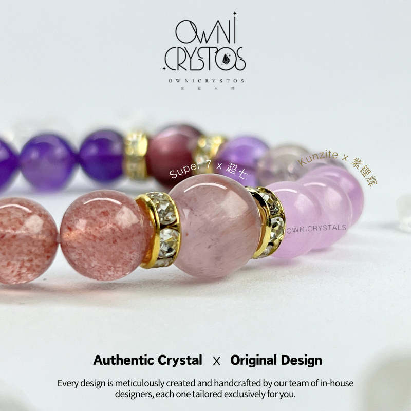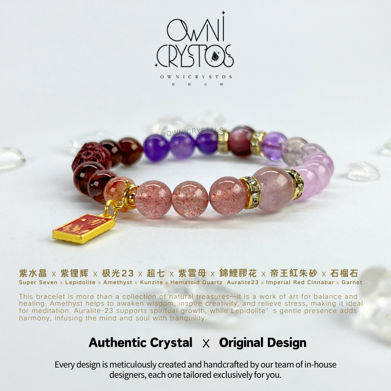 【OwniCrystos】Super Seven Amethyst Kunzite Hematoid Quartz Auralite 23 Imperial Red Cinnabar Garnet CNY Natural charm crystal stone bracelet bangle for woman