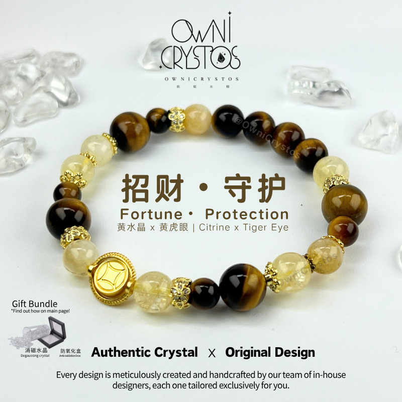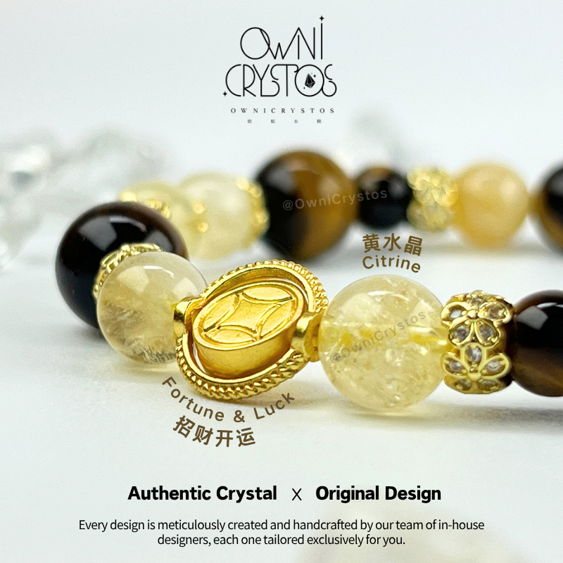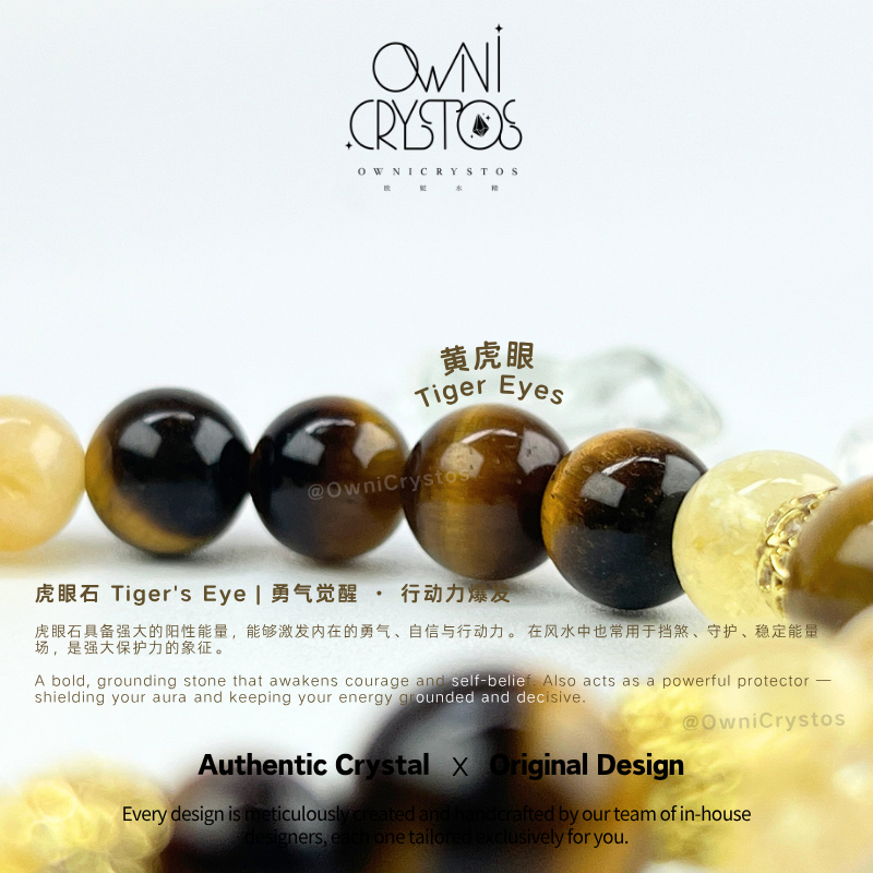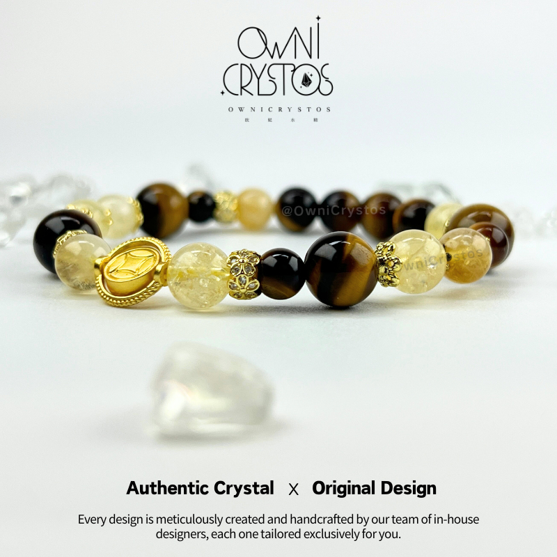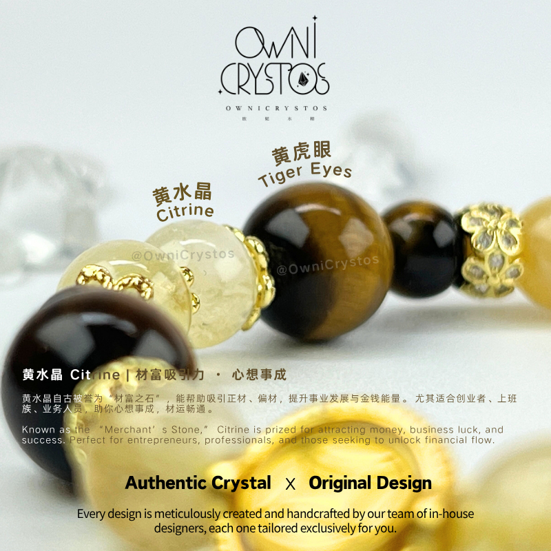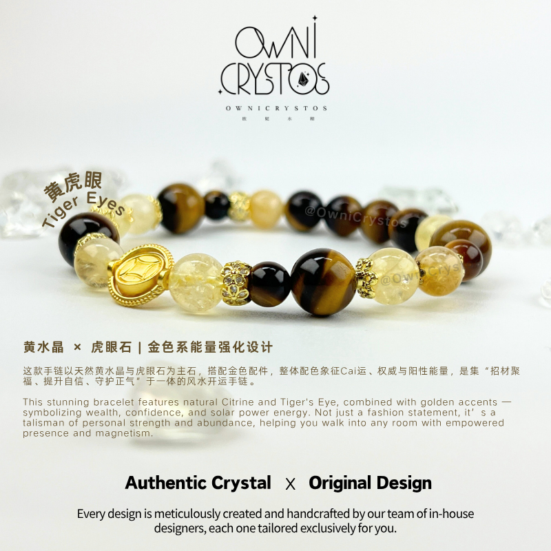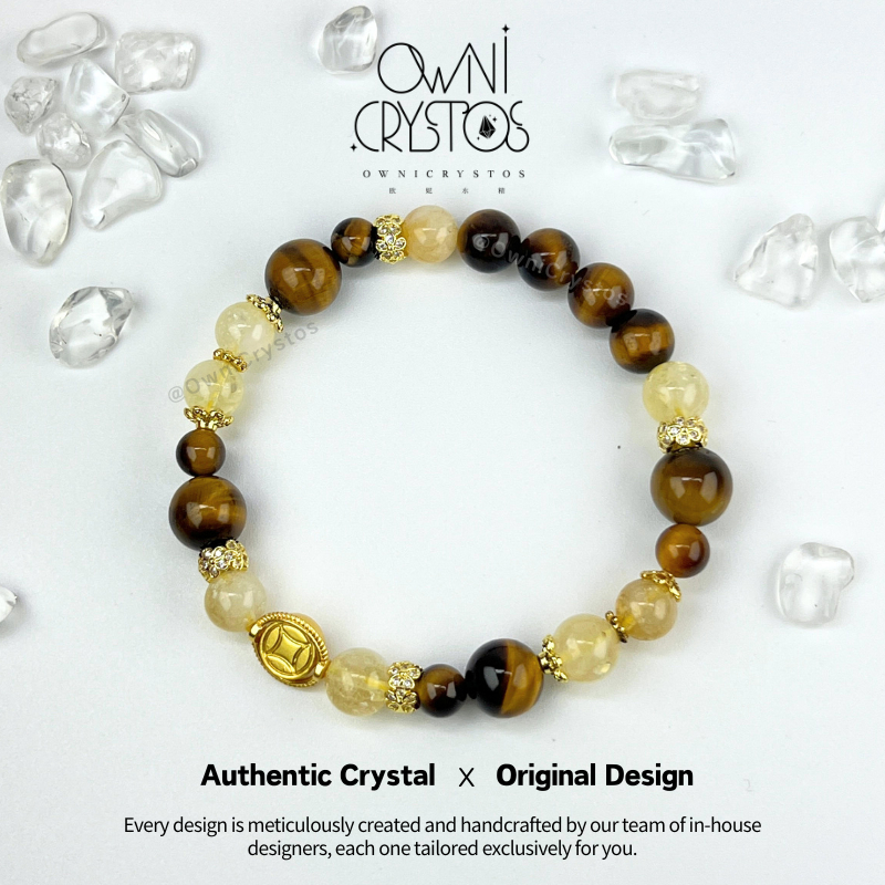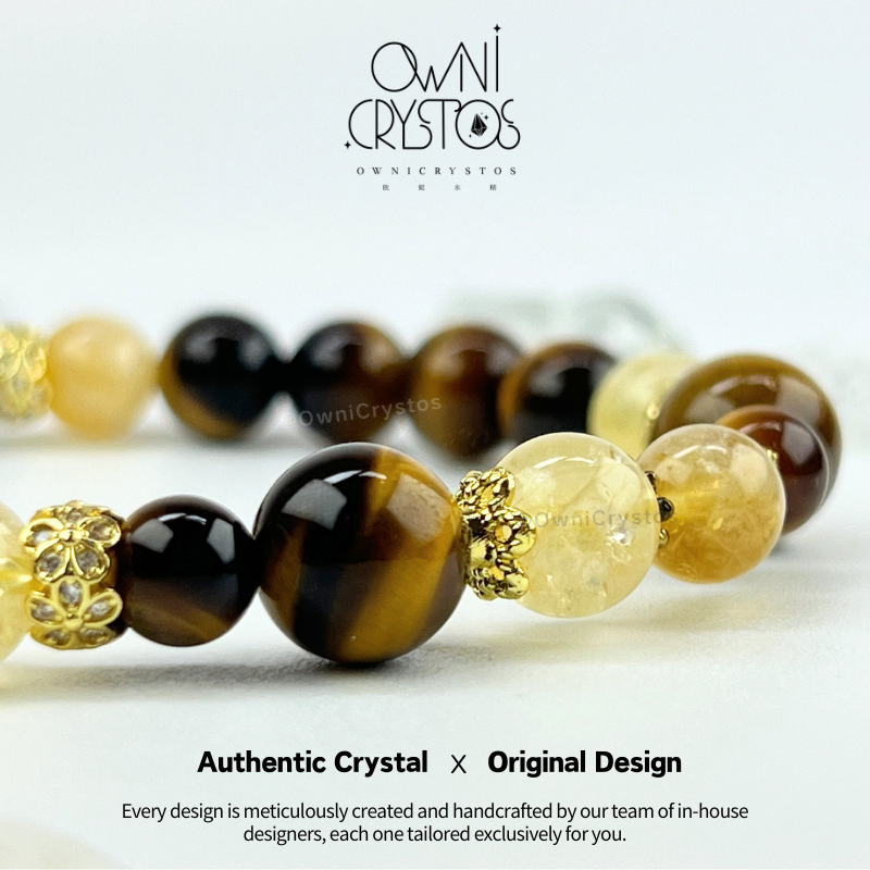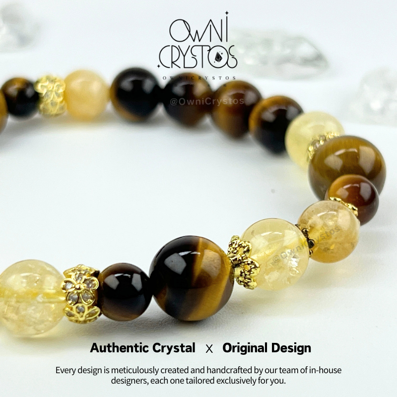 【OwniCrystos】Authentic Tiger Eye Citrine for Wealth & Confidence Natural crystal bracelet Cleansed Blessed