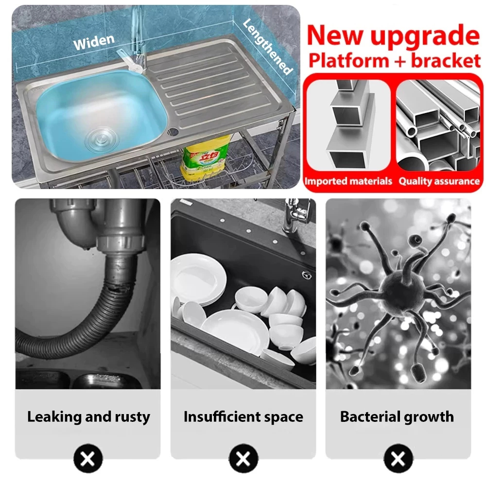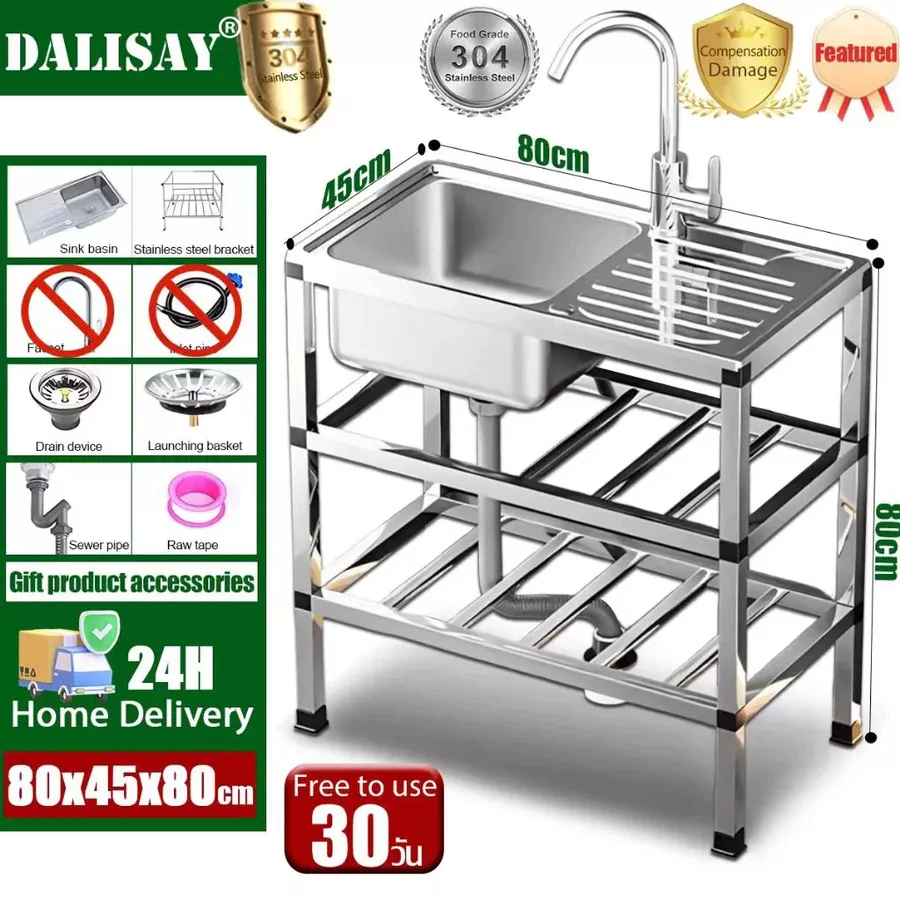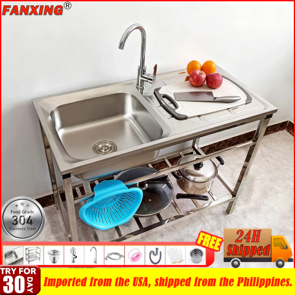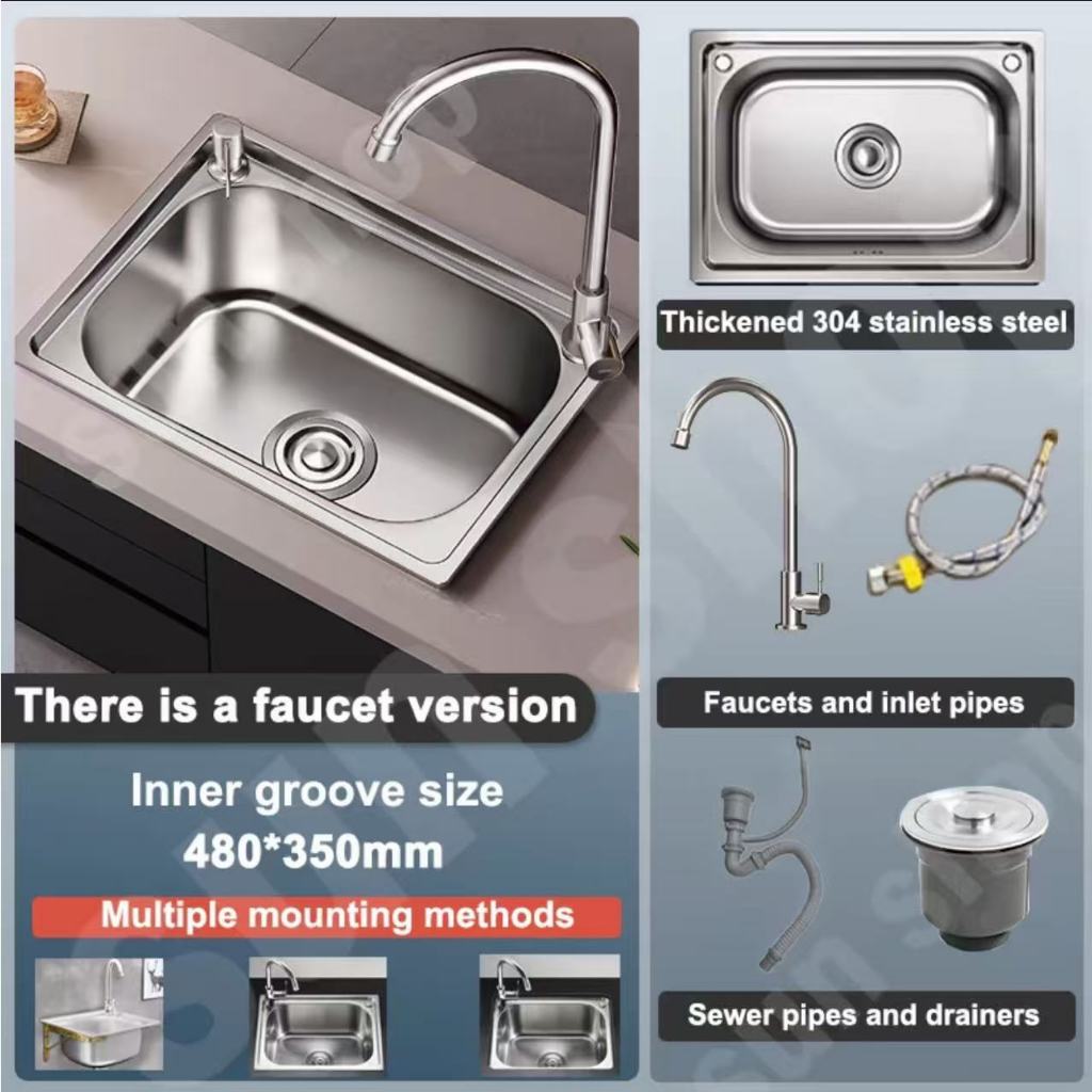 【Recommended Shopee 】kitchen sink Stainless steel Sink with Faucet Panel stand USU 304 complete set