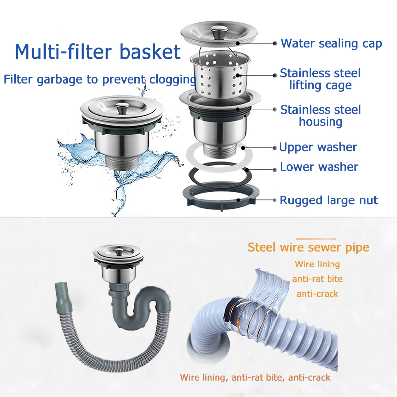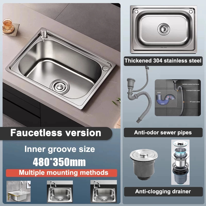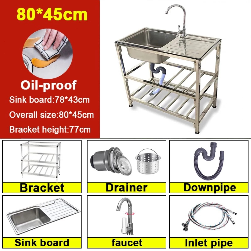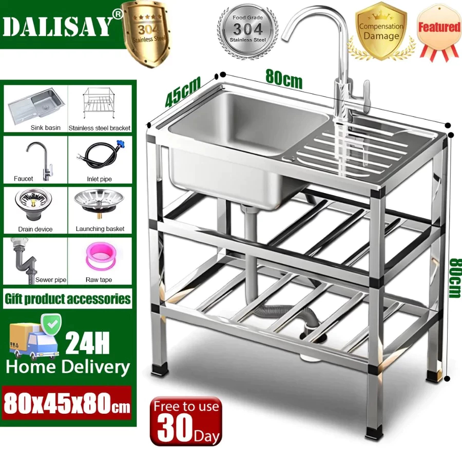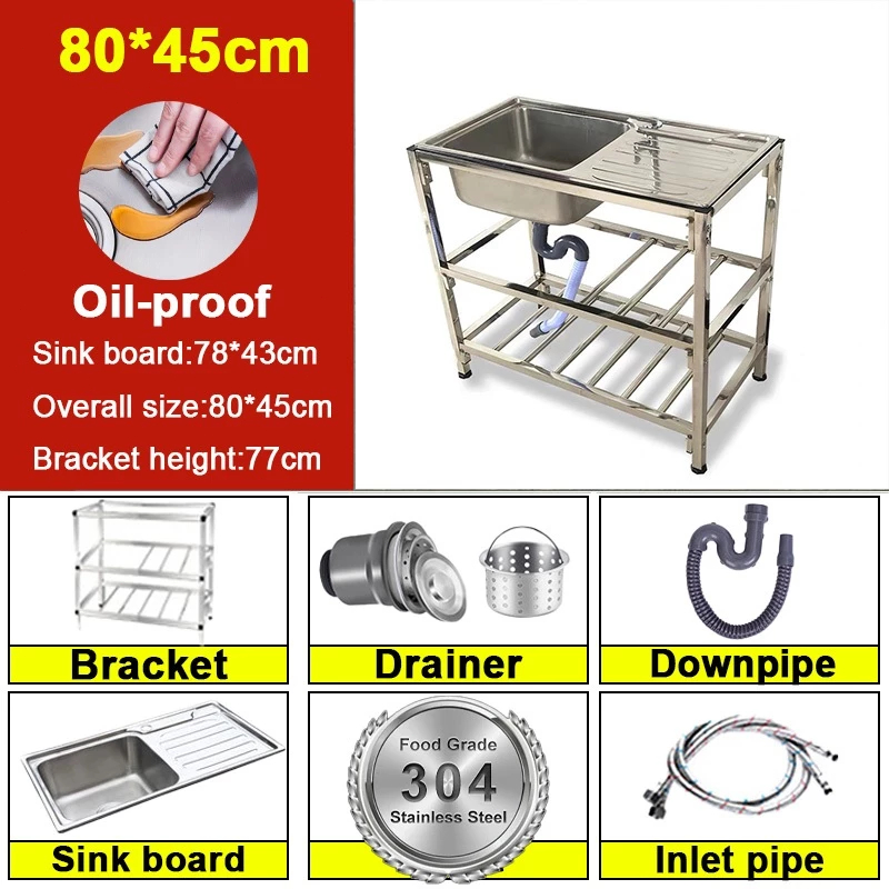 【Recommended Shopee 】kitchen sink Stainless steel Sink with Faucet Panel stand USU 304 complete set