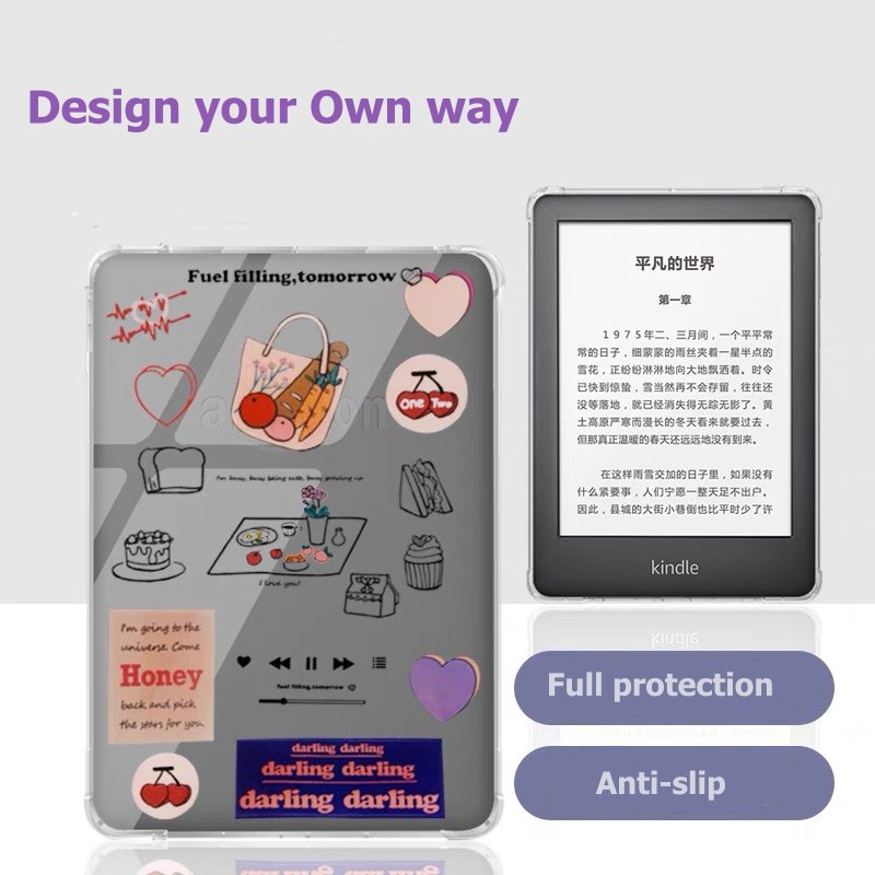 'DIY your own Kindle' Transparent Kindle Back Cover 2022 All New 11th Paperwhite 5/4/3/2/1 Oasis Amazon E-reader Shockproof Clear Protective Shell