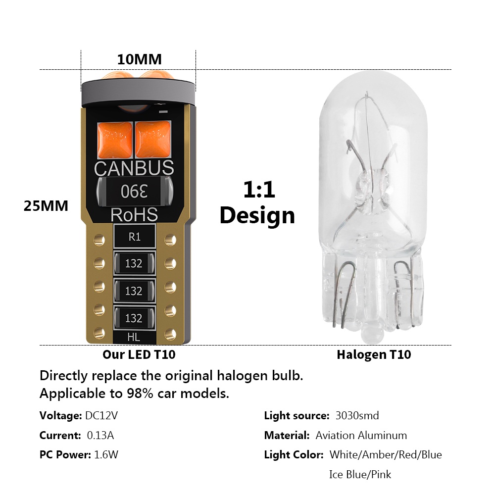 ((2PCS) Super Bright T10 LED Bulb 3030 6SMD Parking Light Car Width Indicator Turn Signal License Plate Roof For And Motorcycle Lighting DC12V