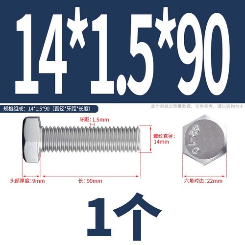 ((JLMG) Sus304 Stainless Steel Fine Thread Fine Thread Hexagon Head Bolt M10M12M14M16 External Hexagon Screw Screw