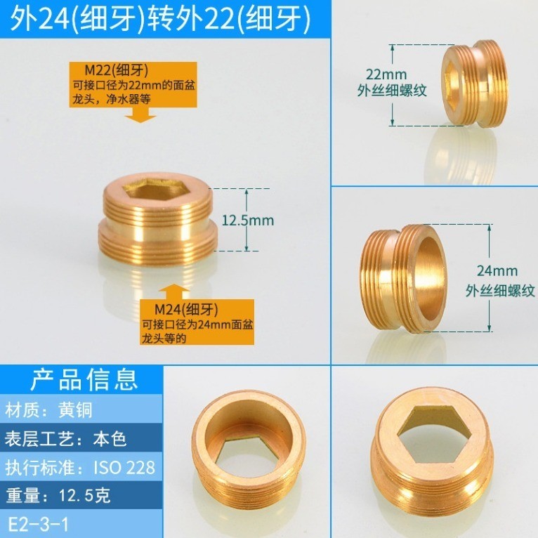 ((JLMR) All Copper Faucet Adapter Accessories Water Purifier Outer Thread Fine Thread to Inner Thread 4 Points Coarse Thread M20/22/24/28