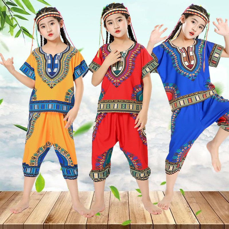 ((Ready Stock) Children's African Drum Performance Costume Set Savage Indian Dance Costume Music Festival Performance Costume Christmas New Year Even