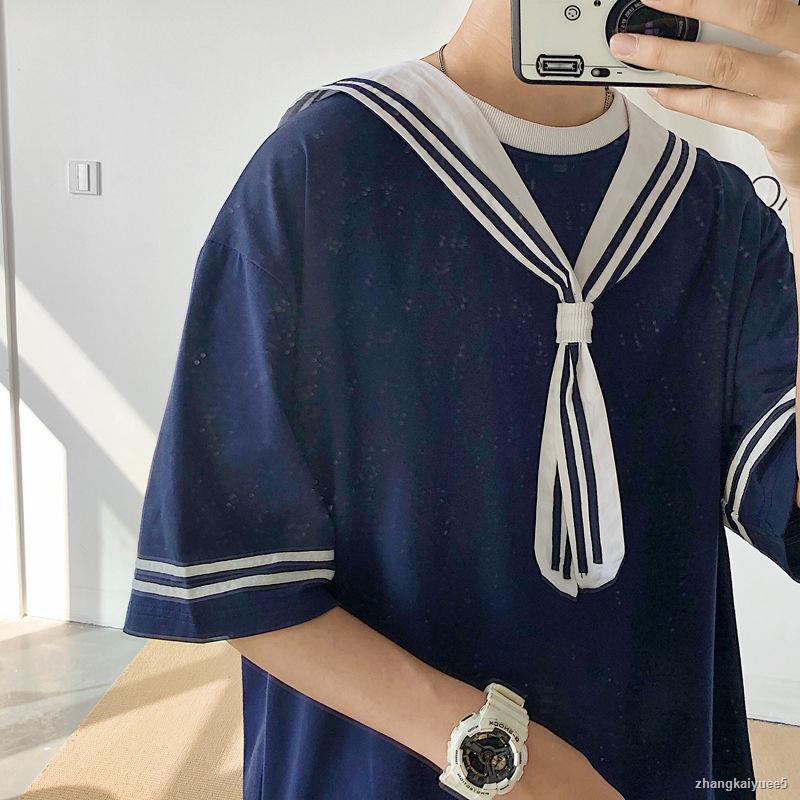 ((Sailor Uniform) Summer Graduation Uniform Pure Cotton Half-Sleeved Male Sailor Uniform One Set Couple Student Class Uniform Group Sports Meet