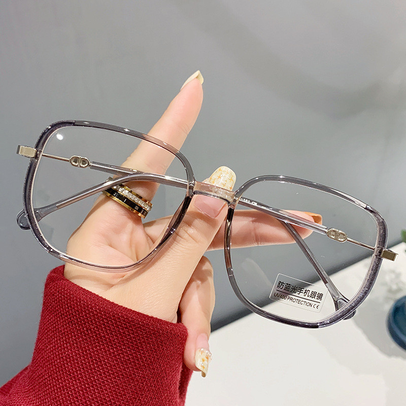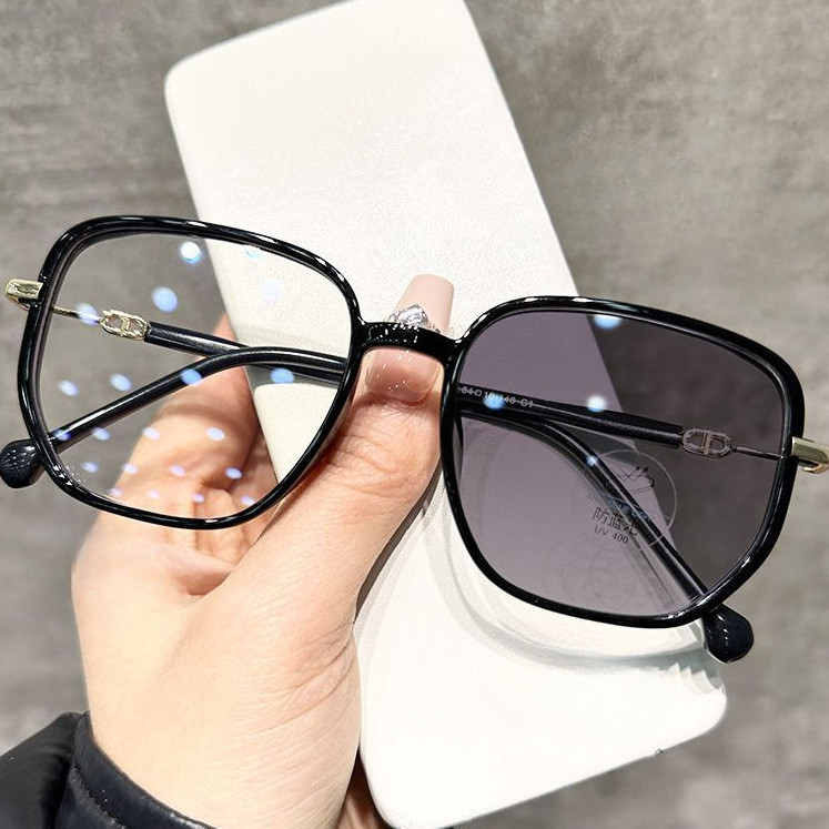 (-0~-500) Photochromic Myopia glasses, photosensitive color changing anti blue light glasses, fashionable women's large frame bright pink color changing myopia glasses