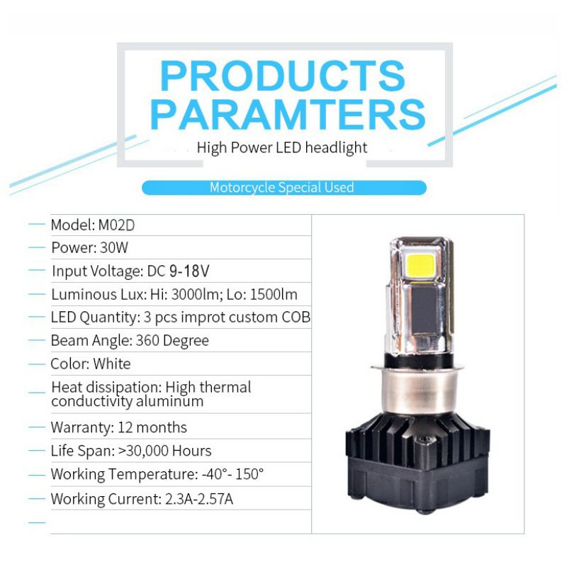 ( T03 )TDD MOTORCYCLE HEADLIGHT 3LED 30W WHITE