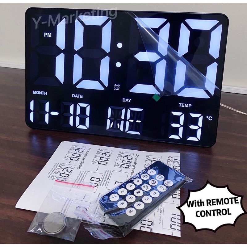 (0717) LED LARGE Display Digits With Remote Control Alarm Clock Wall-Hang & Stand