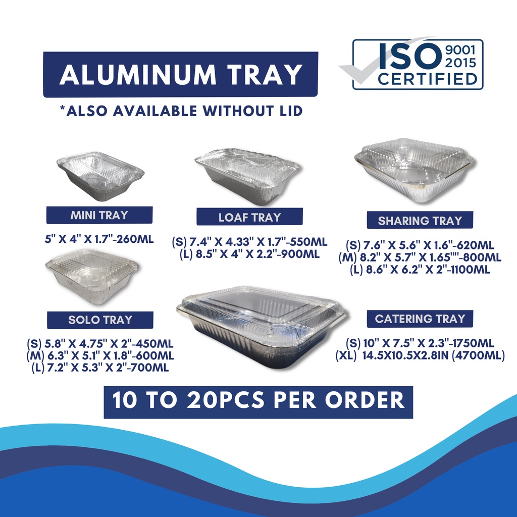 (10 or 20pcs) Aluminum Tray with Lid / 8x4 / 12.5x8 / 12.5x10 / 8x8 inches