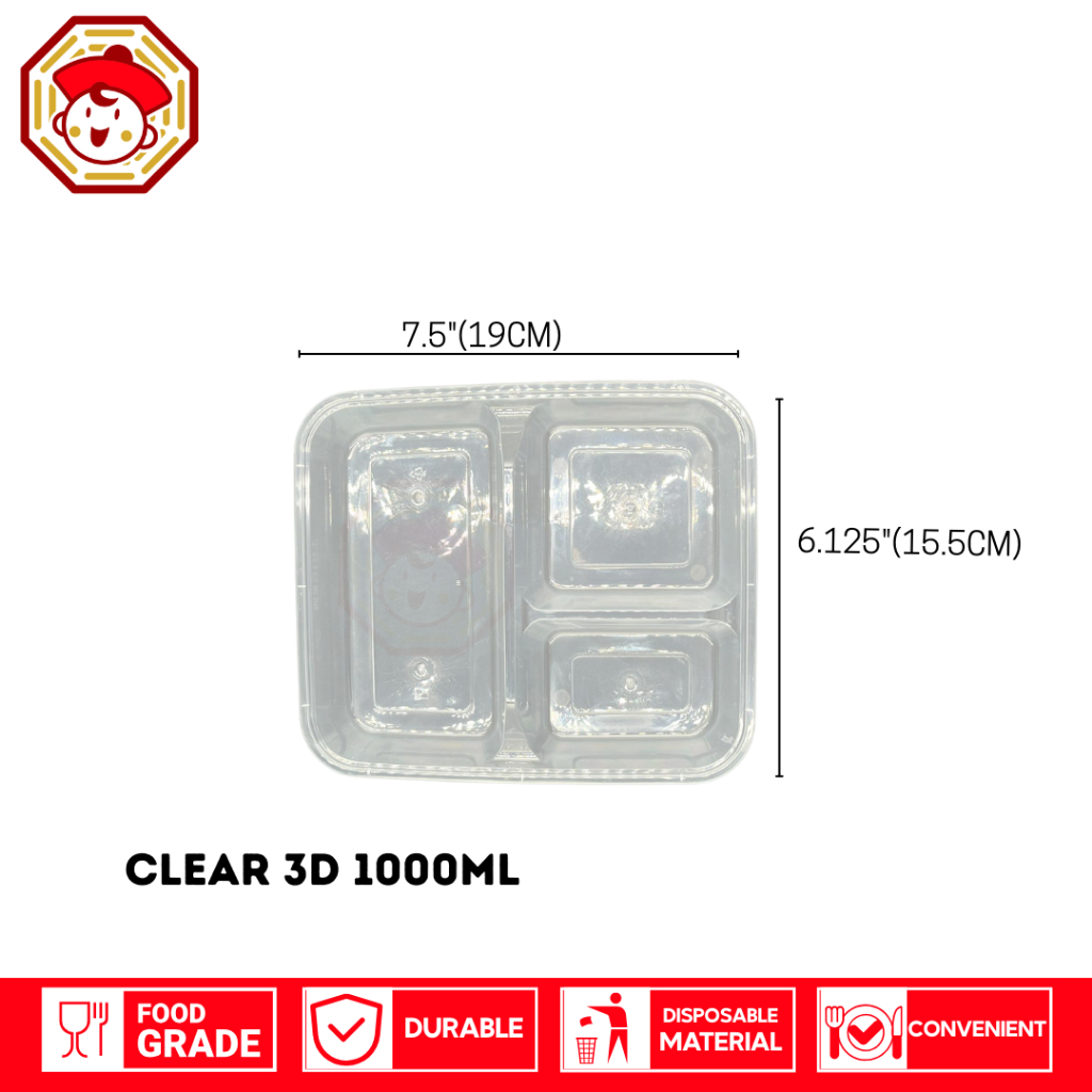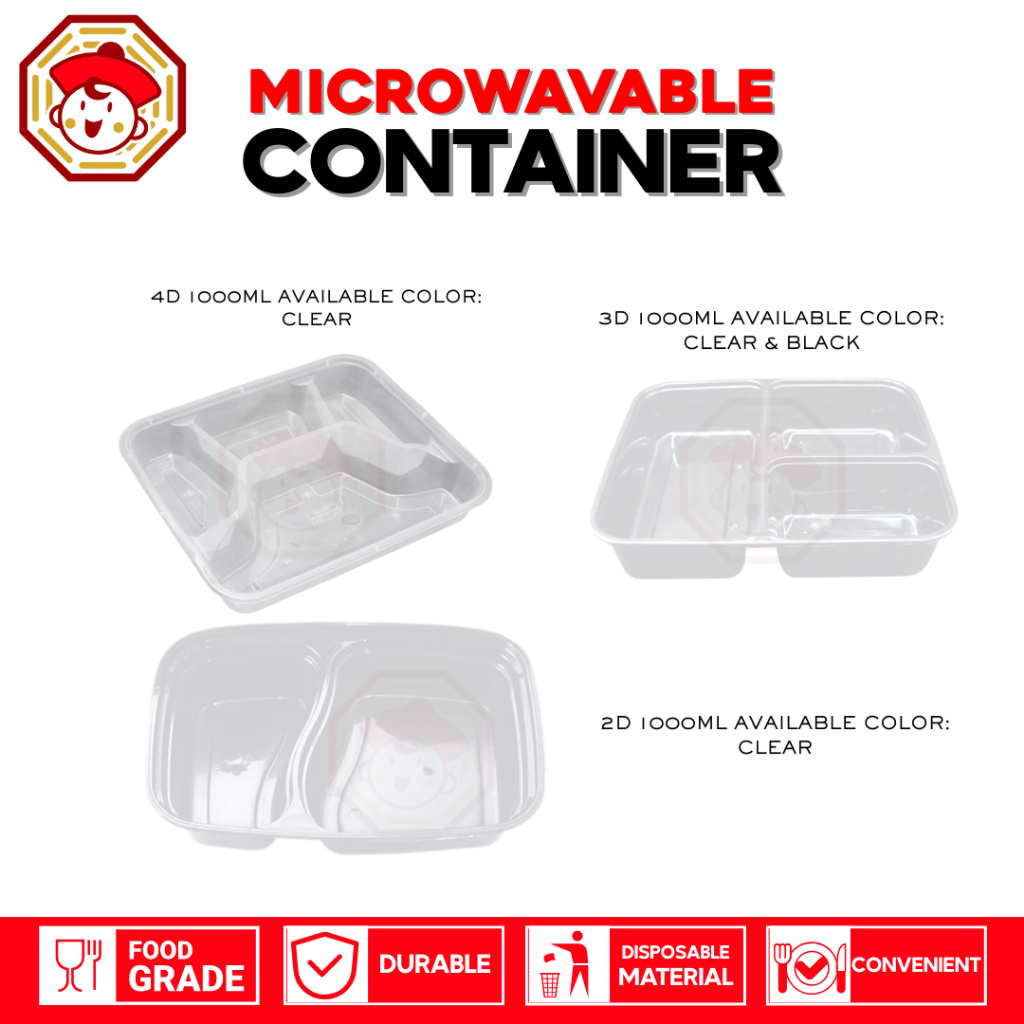 (10 pieces) Microwavable Container with Division 2D, 3D, 4D tray with plastic lid for food package