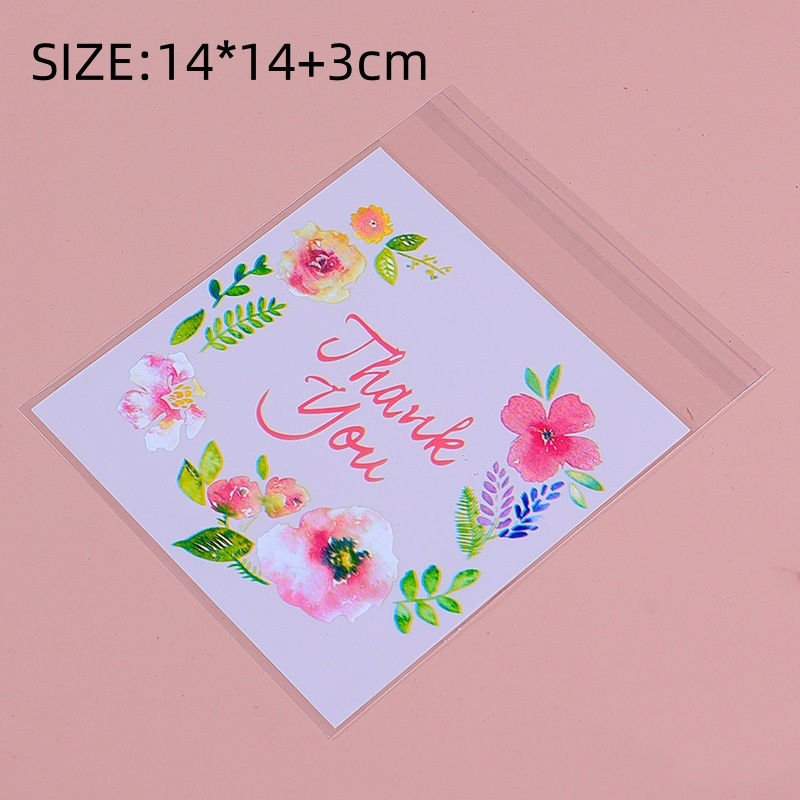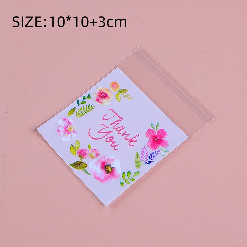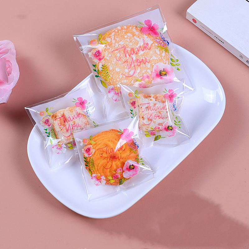(100 PCS) 7x7 CM Sweet Floral Cookie Bag Candy Cookie Plastic Pastry Heat Seal Handmade Wrapper