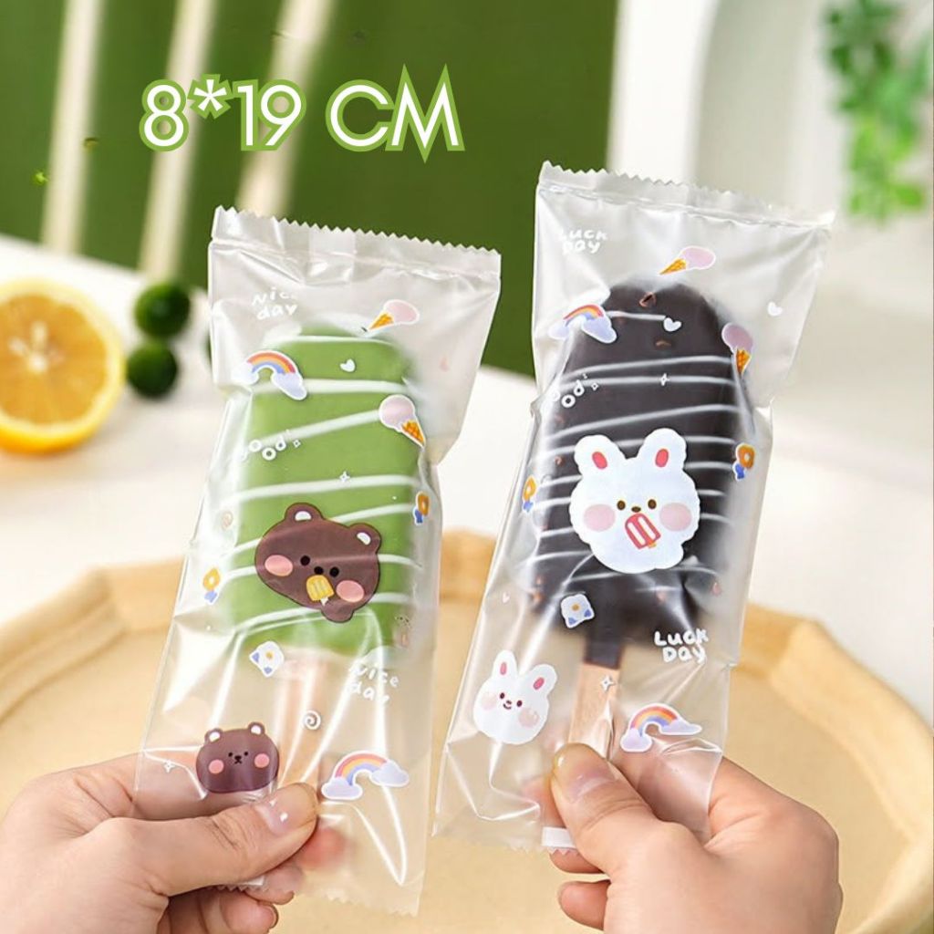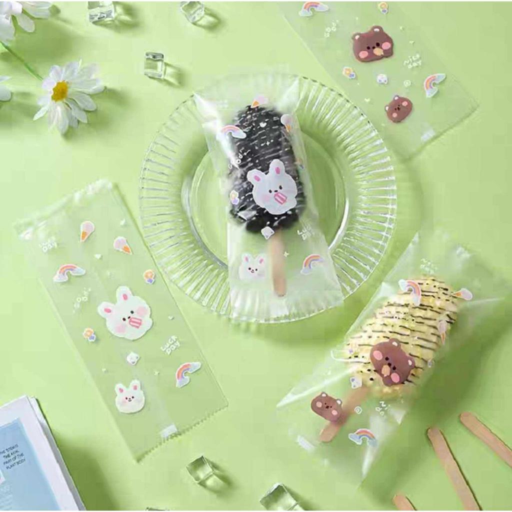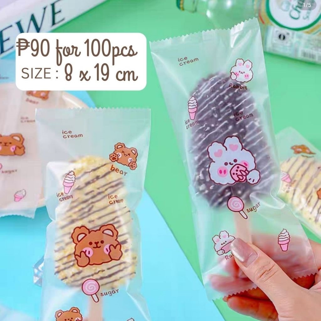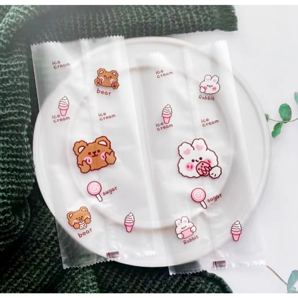 (100pcs) 8x19 CM Ice Cream Bear Kawaii Pastry Plastic Bag Seal Graham Bar Heat Seal Wrapper
