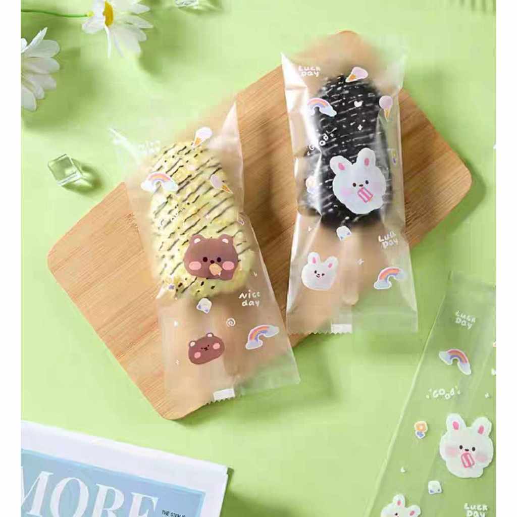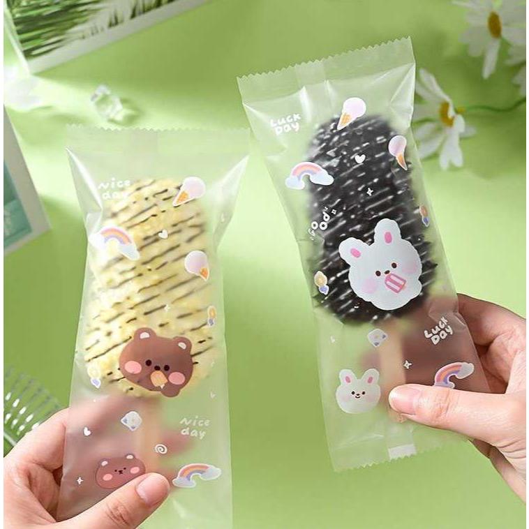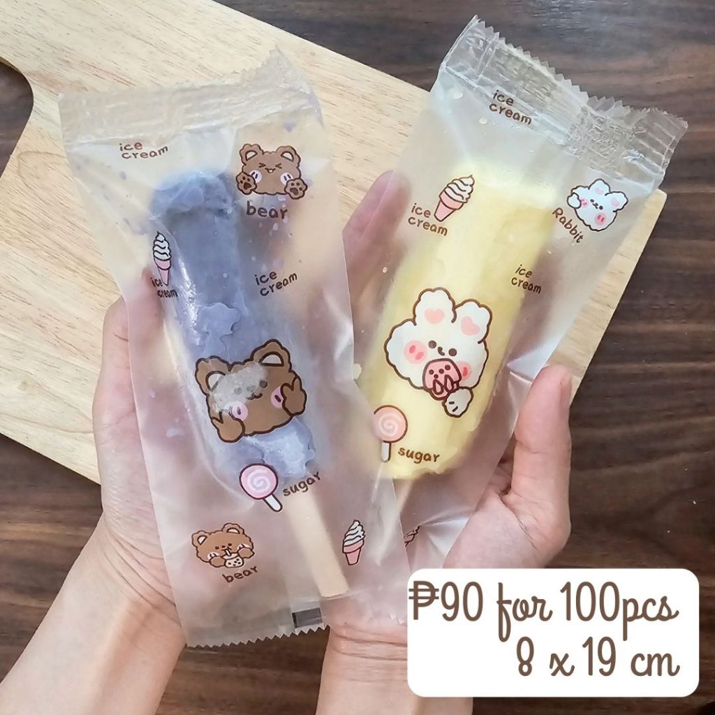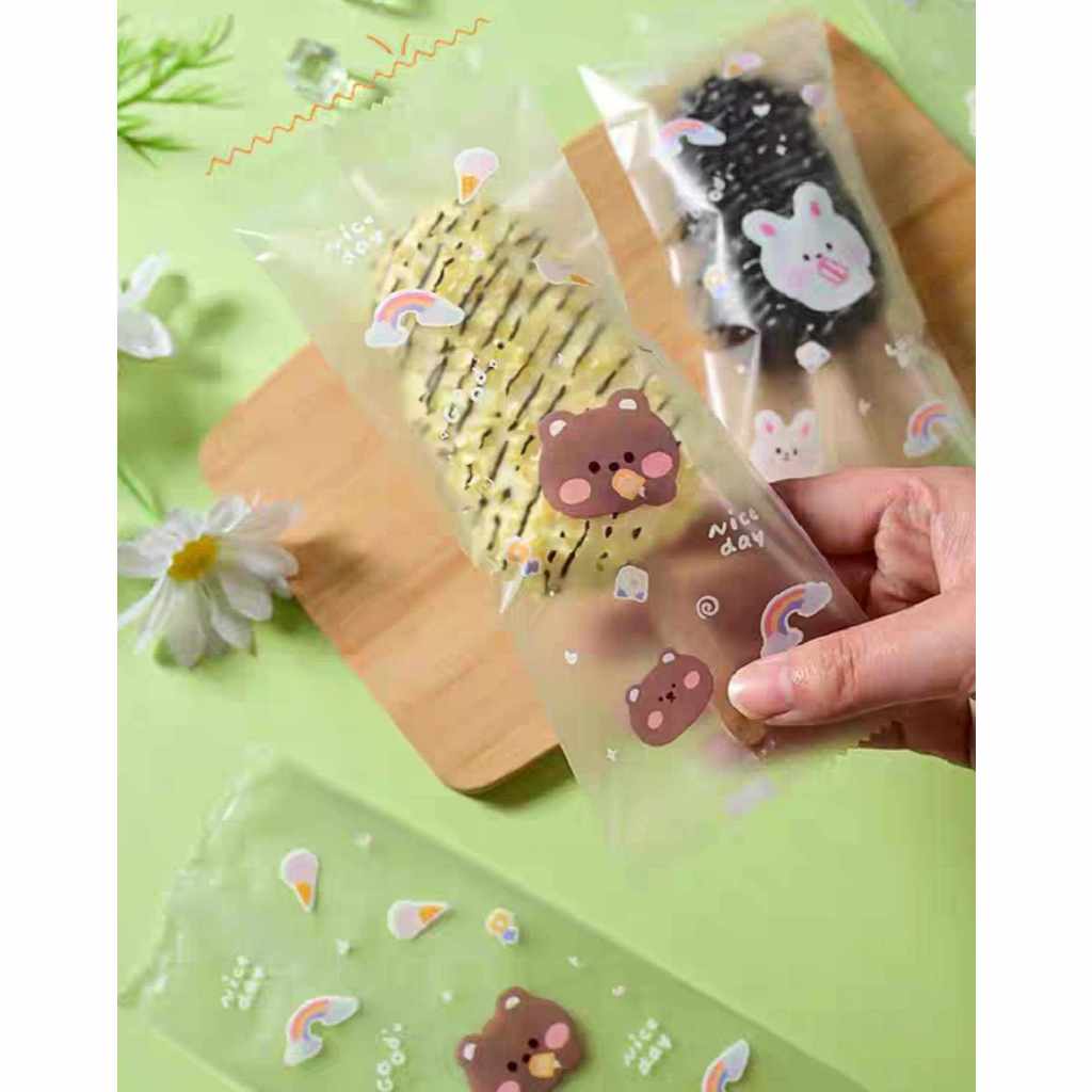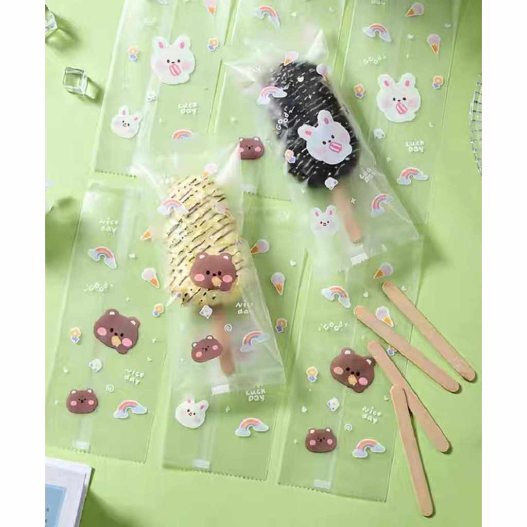 (100pcs) 8x19 CM Ice Cream Bear Kawaii Pastry Plastic Bag Seal Graham Bar Heat Seal Wrapper