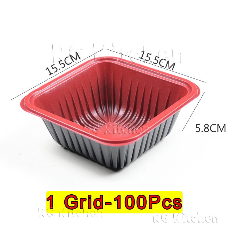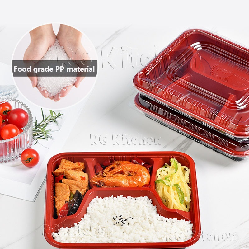 (100pcs) Thick food material red bento box 1/2/3/4/5 grid partition takeaway packaging box wholesale