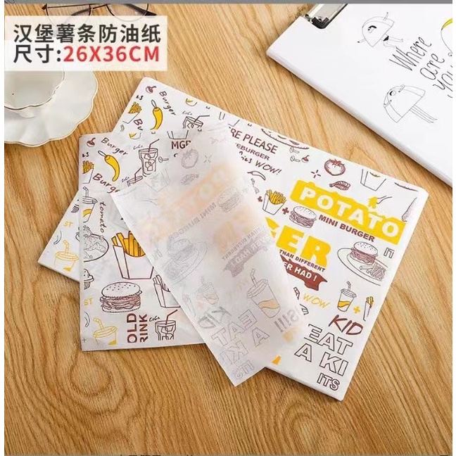 (100pcs) Wax Paper Burger Sandwich Cake Roll Wrapping Paper Greaseproof Liner Paper Food Tray Paper