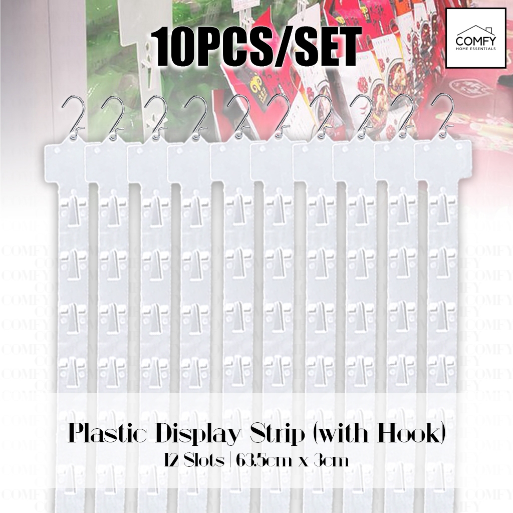 (10PCS/SET) 63.5cm Display Hanging Strips Supermarket Snack Injection Plastic Strip Clear WITH HOOK