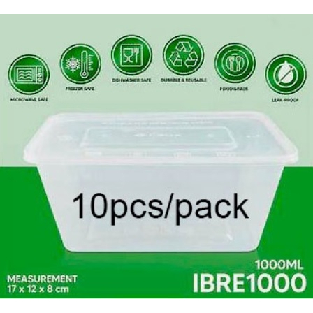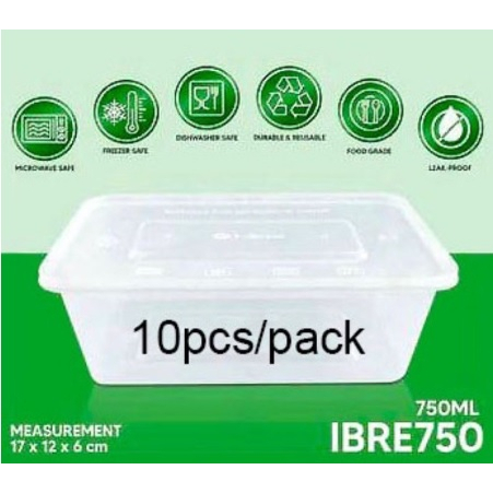 (10pcs) 650ml Square Microwavable Container (Clear)