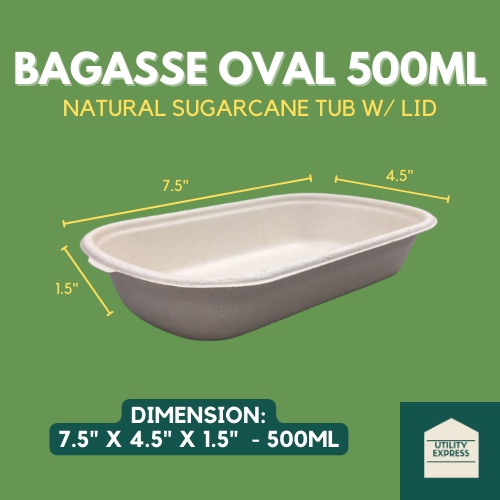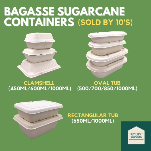(10pcs) Bagasse Sugarcane Containers/Natural ( Clamshell / Oval Tub / Rectangular Tub ) Eco-Friendly